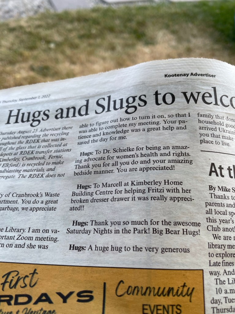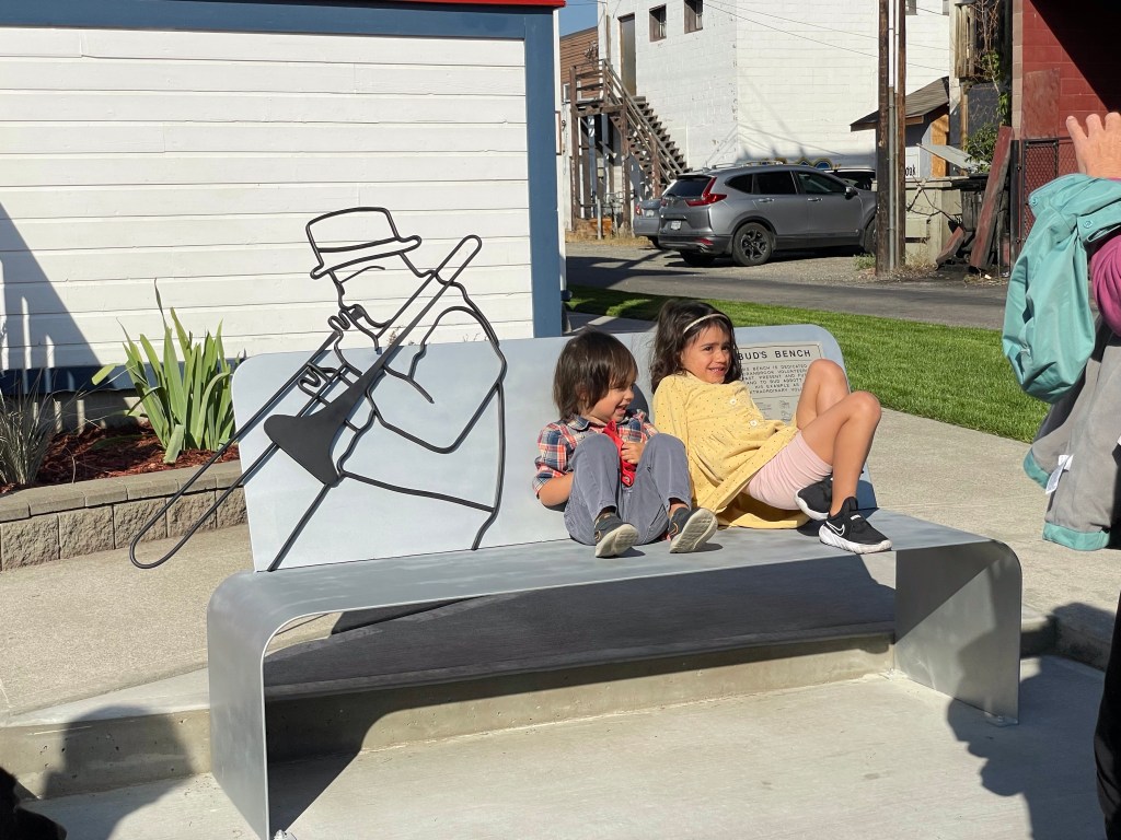 Once downtown, I was happy to see Jim was set up for sound, people were all happy and I was able to wander down to the first part of the day. I live streamed the reveal of Bud’s Bench. Bud Abbott was one of the founding members of Cranbrook Community Theatre in 1964 and an avid volunteer in the community into his 97th year on the planet, leaving us the following year. The bench is amazing as it has a QR code that takes people to all the volunteer opportunities in Cranbrook.
