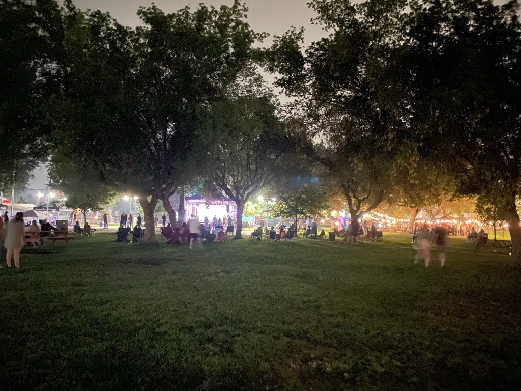 I was glad I wore my favourite music patterned dress and wedge sandals. I felt pretty and confident and had my performer tank filled. As the ‘face’ I also got a lot of positive feedback for all we had accomplished there, a few complaints, found items and the occasional report of trouble. I couldn’t believe I was seeing three women walking into the middle of it all drinking Bud Lights. I do think they’d already had a few too many by that point. It was great to work with my fellow Board members and out volunteers to make something like this come together. Although the crowd was smaller for most of the day, as evening approached more and more came and I figure there were 5-600 at the peak of it. I was intrigued by how many older people also stayed to the end.