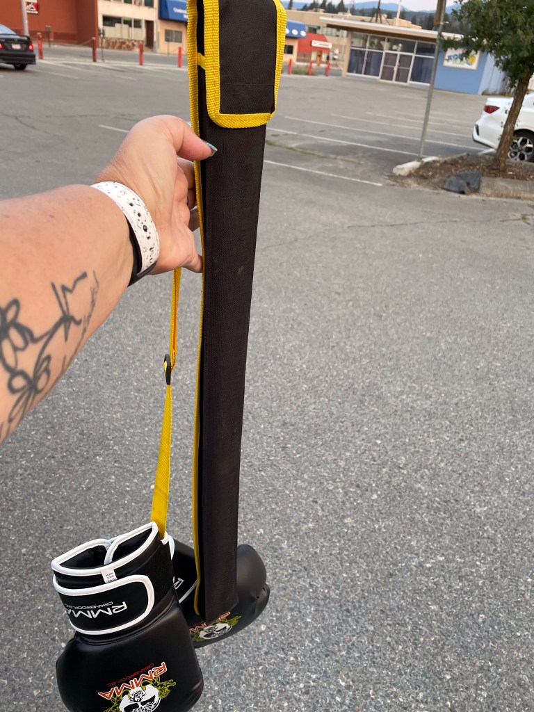 I was very tired but made myself go to my Shield Maidens class, even wore my slippers. Wasn’t long in before I took a stick hard on my left thumb and had to ice it for the rest of class. I know it will be fine tomorrow but I am glad it wasn’t my dominant hand. Joel gifted me with a stick bag as I don’t want them rolling around in my car but I didn’t need the fancy one for sale. It is perfect!