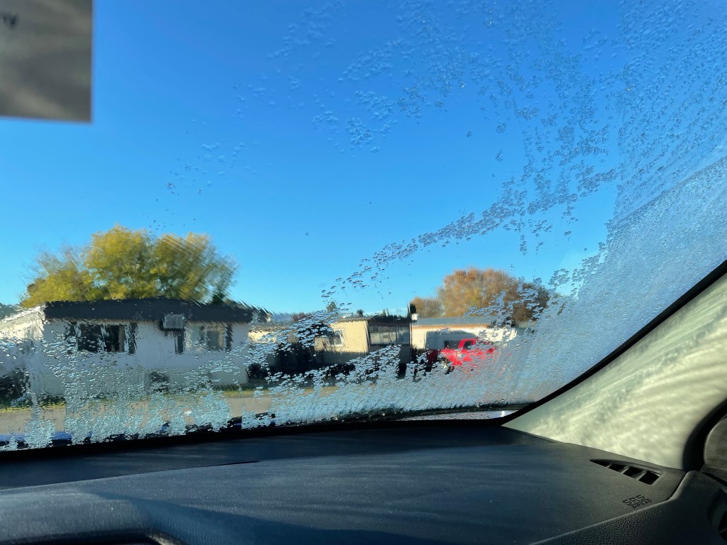 The morning was gorgeous and I even got on the treadmill again for the first time in a while. I have gotten to bed too late recently and need to adjust that going forward. My tree is quite stunning and inflatables make me smile. I didn’t even notice until I got in the car that there was ice on the windshield.