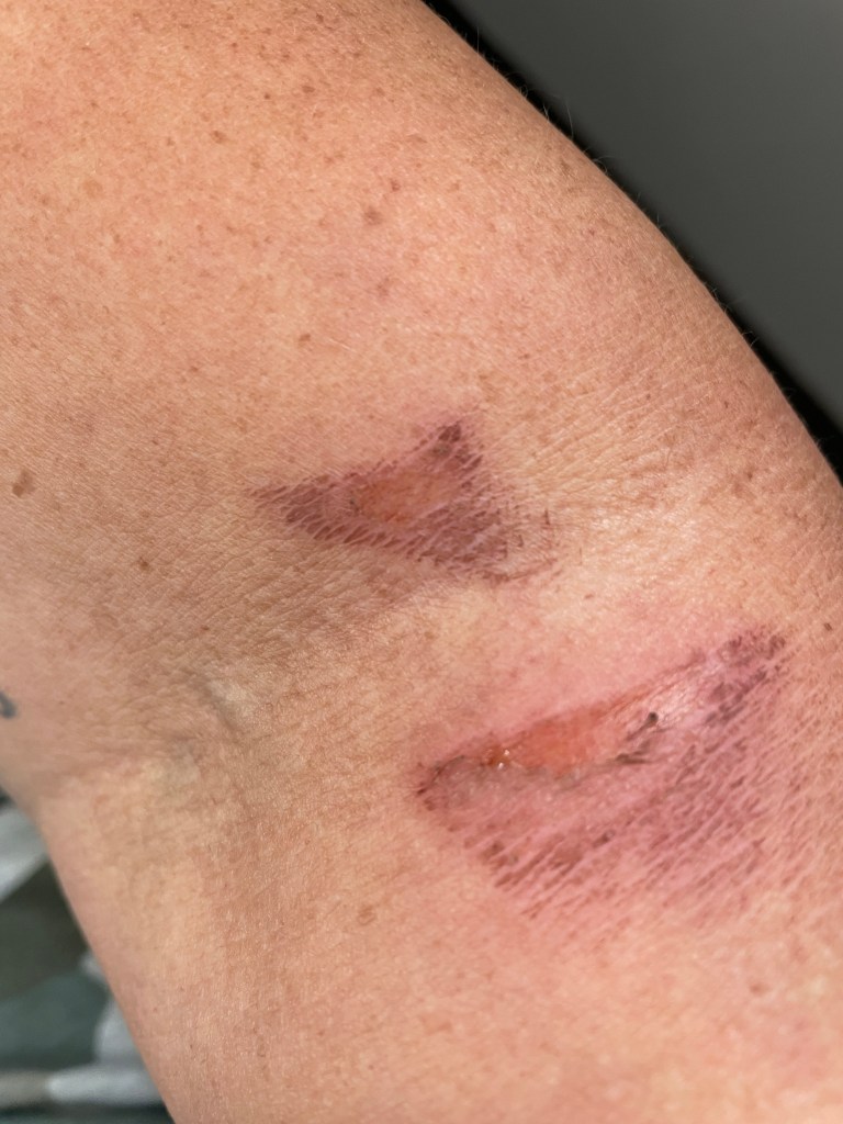 Unfortunately I managed to scratch my burn in my sleep and it really hurts today. Three days later, it should be healing, sigh. It is in an annoying spot for work and play. I don’t want to cover it up though.