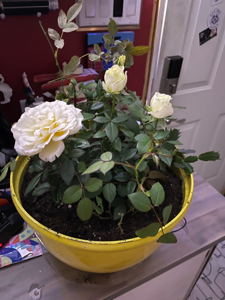 I popped off to Home Hardware in search of potting soil which they did not have but I grabbed a few fun games for Birthday and Christmas presents. Next was Walmart, where I found the soil and a shirt on sale. I stopped at work to pick up an empty pot and some small plants to replant together including the white rose from the service yesterday.