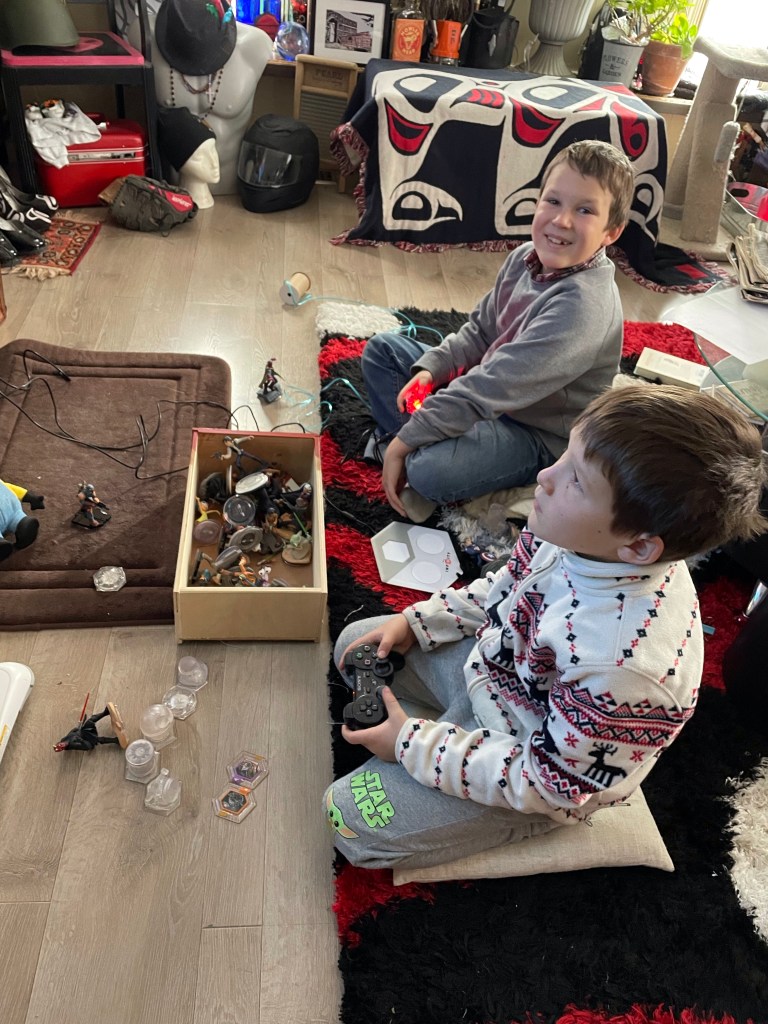 I brought Sawyer and Will back to my place for the afternoon after stopping at Arby’s for lunch. They played Disney Infinity on my PS3 and it was interesting to watch as I like to play the worlds in the game but they liked building their own, much like Fortnite. I sat and read while they played and it was a lovely way to spend the time.