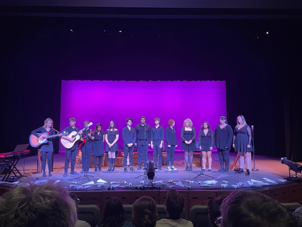 I had my dinner and then Tracey joined me to watch Ridge with Brendan McLeod and the Fugitives at Key City Theatre. I wish my whole Family had been there. It was powerful and poignant and extremely well done. The story of Vimy Ridge as researched and written by Brendan. To see a young man explain and try to relate to what has gone before is really something. It was opened by the Mount Baker choir. They were amazing