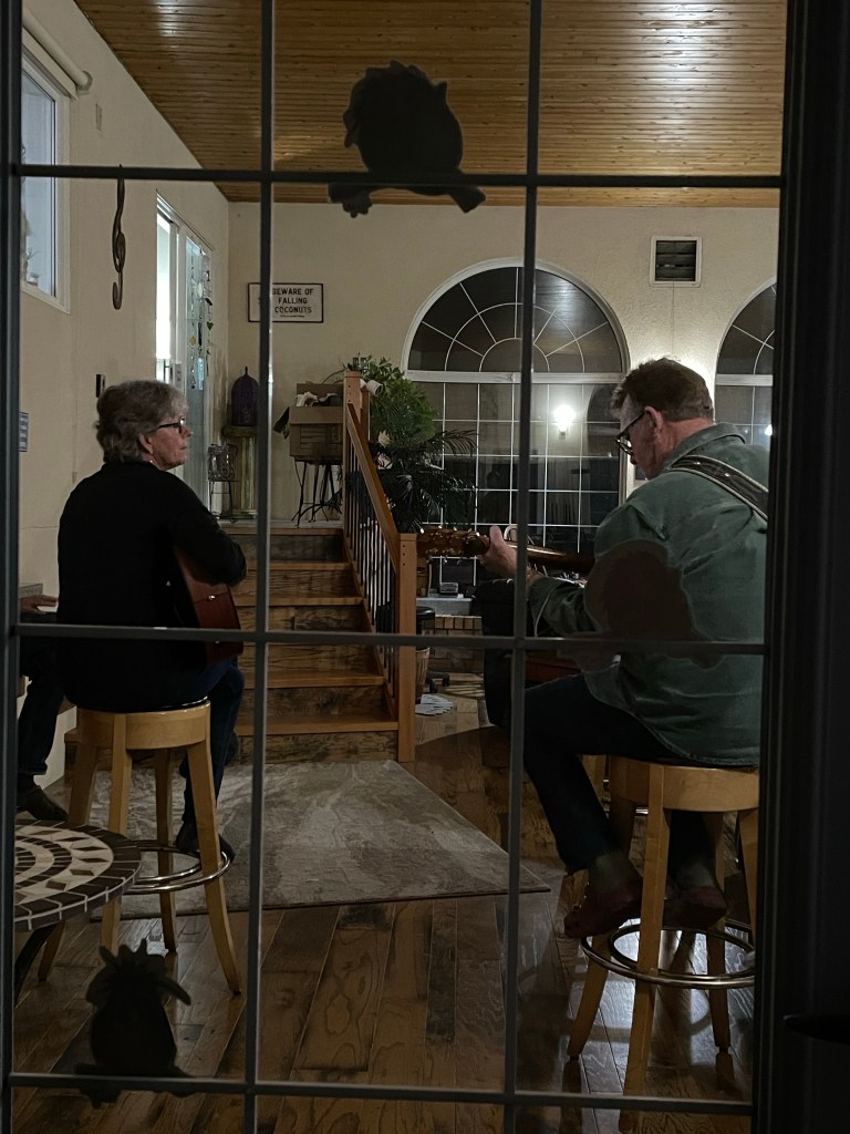 After that we went to Dave and Trudy’s for a wonderful visit. Dave played guitar and sang. Tracey eventually felt comfortable enough to grab a guitar and join in. It was good for her to watch and learn from him and they are lovely hosts. He shared a bit about his military experience and life since and we all got to know each other better.