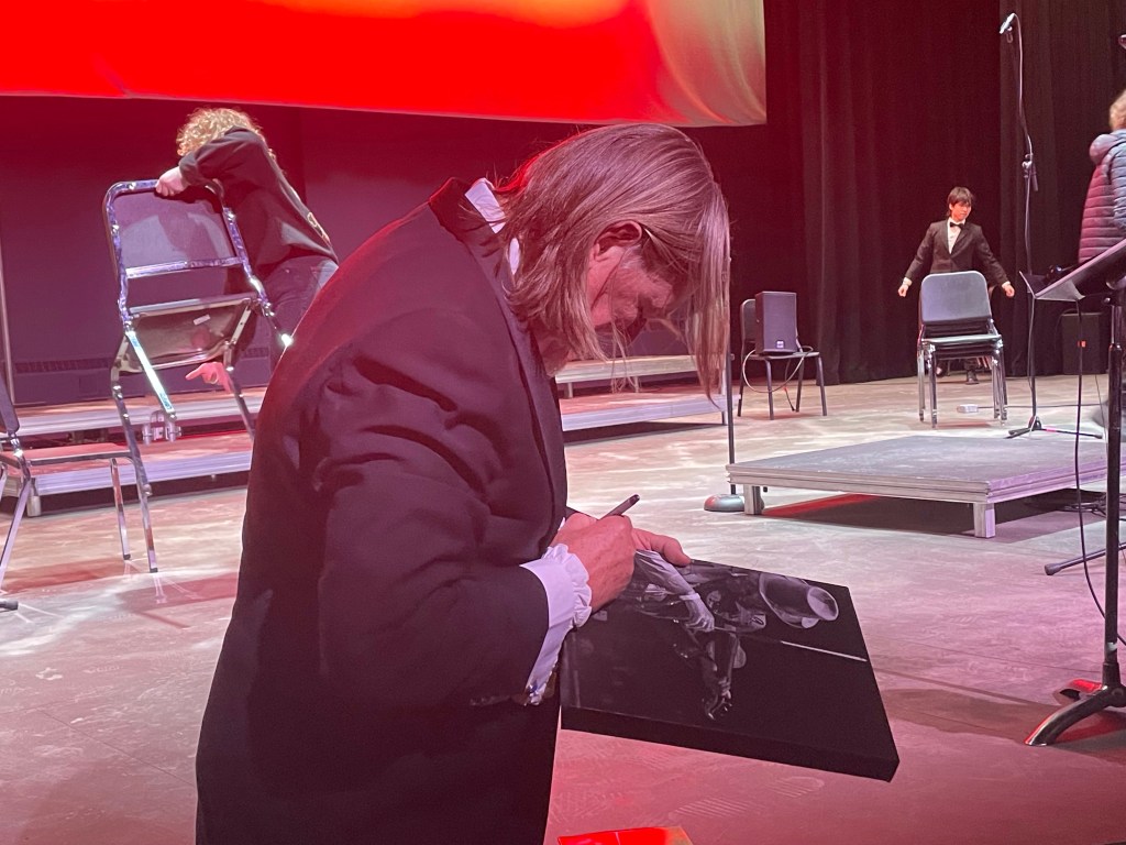 I was home long enough to get chores done and then picked up Bill, Deanne and Ashlée to go for Sushi before heading to Symphony of the Kootenays featuring Daniel Lapp. I was thrilled to learn Maria Elliot played violin with them which was just an added bonus to a truly delightful evening. Daniel is crazy good and entertaining, the SOTK was incredible to watch and listen to, much to my surprise, I will admit. I have never been to the symphony before and really enjoyed it. I knew they were top quality musicians, just didn’t think I would enjoy it so much. There was a very good house of all ages. After, we met Daniel front of stage and had a wee reunion as we know him from Vancouver Island MusicFest and Ashlée had taken the photo of him that he then bought from her and uses on his website and other media platforms. I brought the canvas one and she her print to get him to sign and we all got excited to see each other again in July when he comes and plays the Fest. All and all a fabulous day that filled my tank.