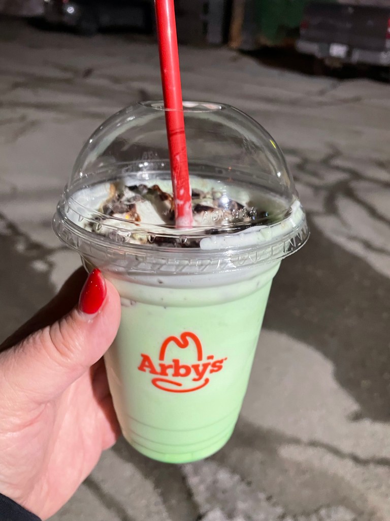 When I left work I decided to treat myself to a small Mint Chocolate shake before we don’t have them anymore. It was worth the calories!
