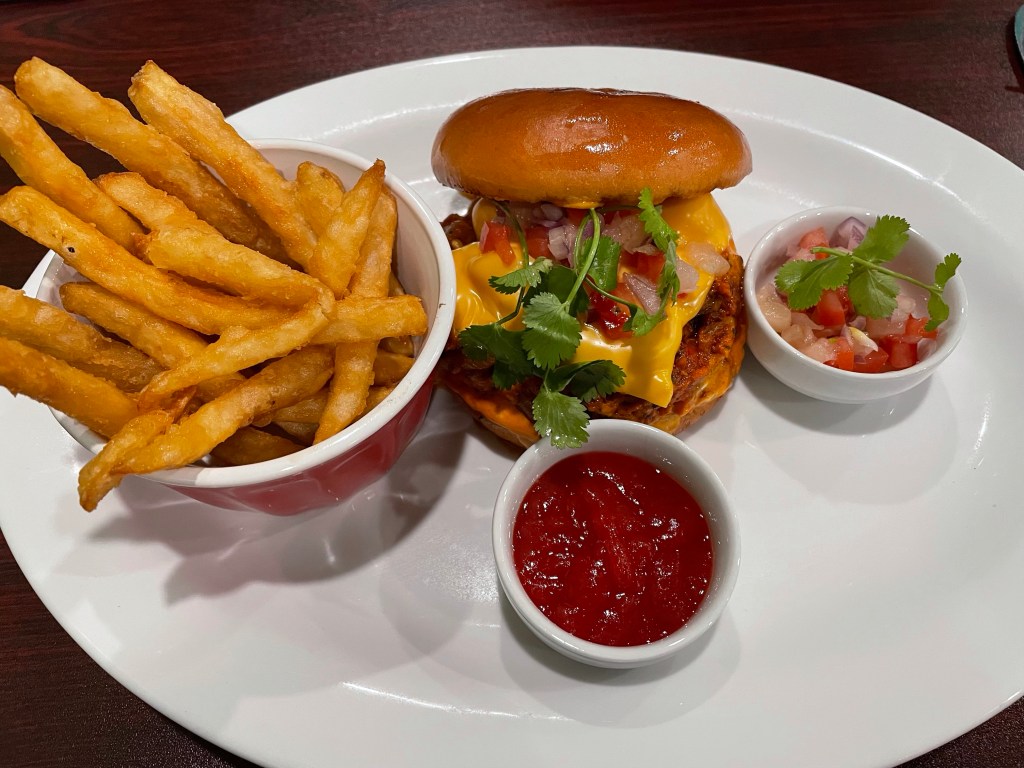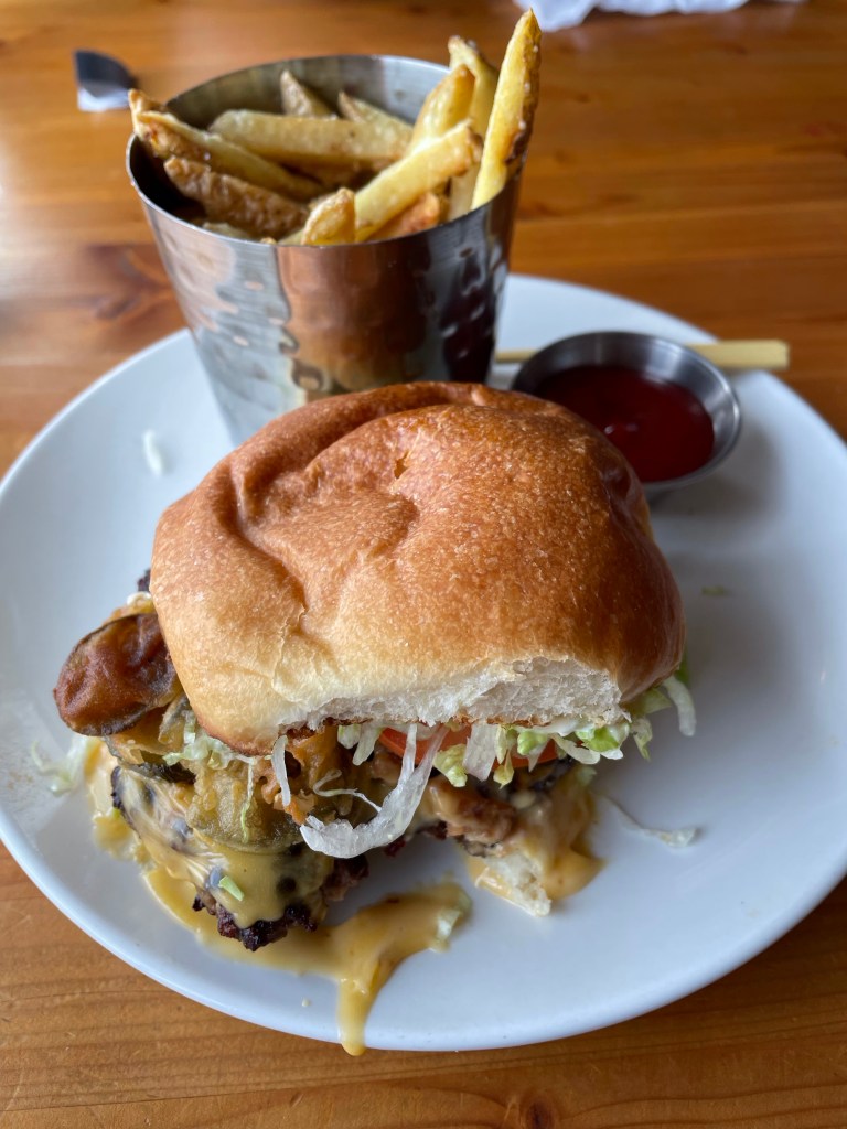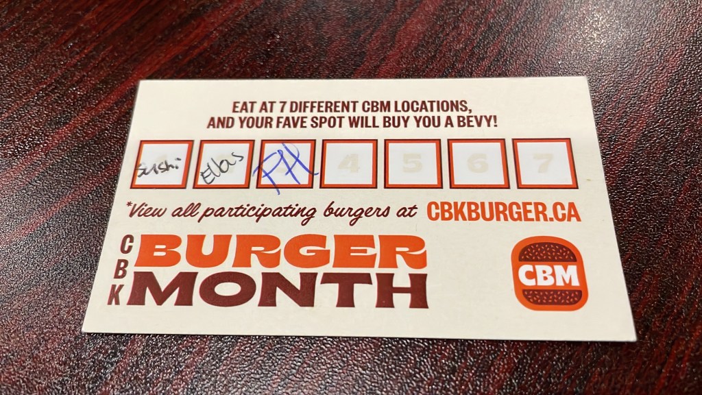 Today was burger day for me in the middle of Burger Month in Cranbrook. For March, there are 16 restaurants all featuring an off the menu specialty burger and side for $20 with $5 of each one going to the Women’s Resource Centre. If you complete your card with 7 different ones you get a free beer at the end. It’s a win-win, good food and a good cause. I am not usually a burger person and a couple of them have had ingredients that give me indigestion, but still so worth trying them. Today I had lunch with a friend at the Fire Hall and had the Vagabond of Dinktown (Cranbrook’s nickname) and then a late dinner with Rae-Anne at Bayleaf Indian Fusion for the Butter Chicken Burger. I want everyone to try it, it was so messy that I ate it with a knife and fork.
