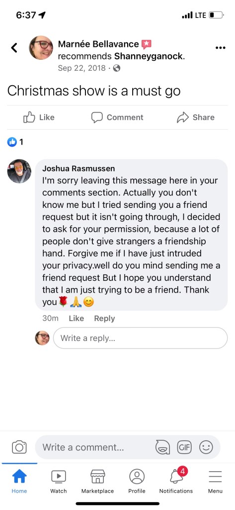 I came out to find a creepy request on FaceBook to a post from 2018.