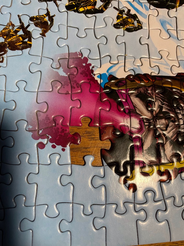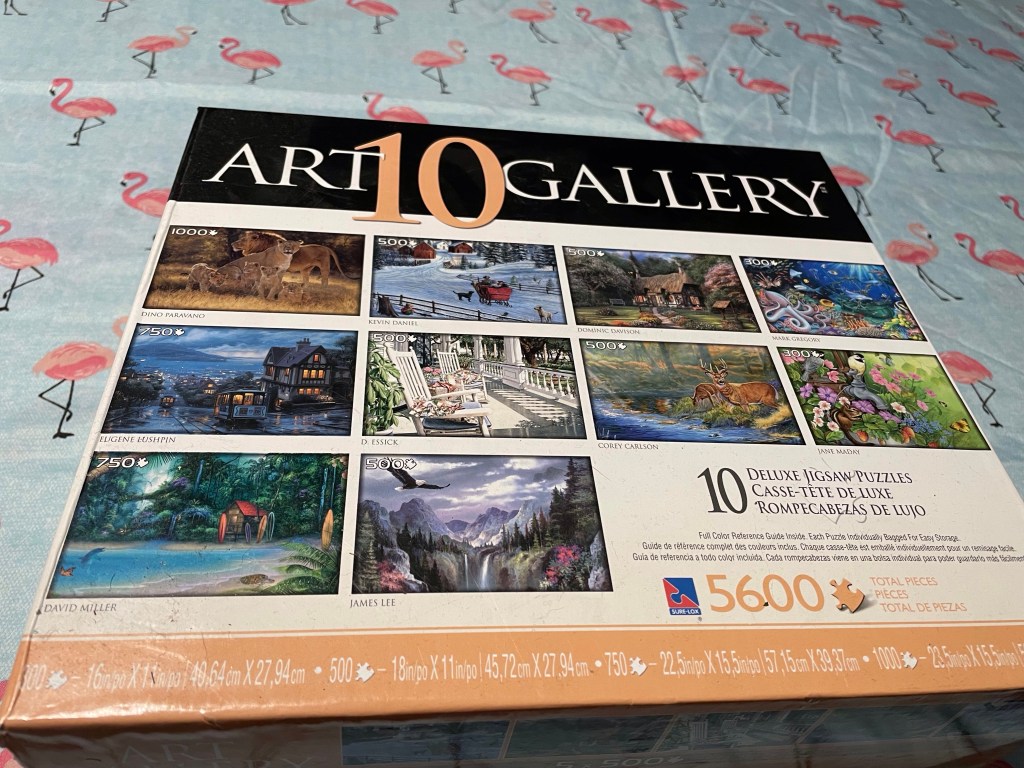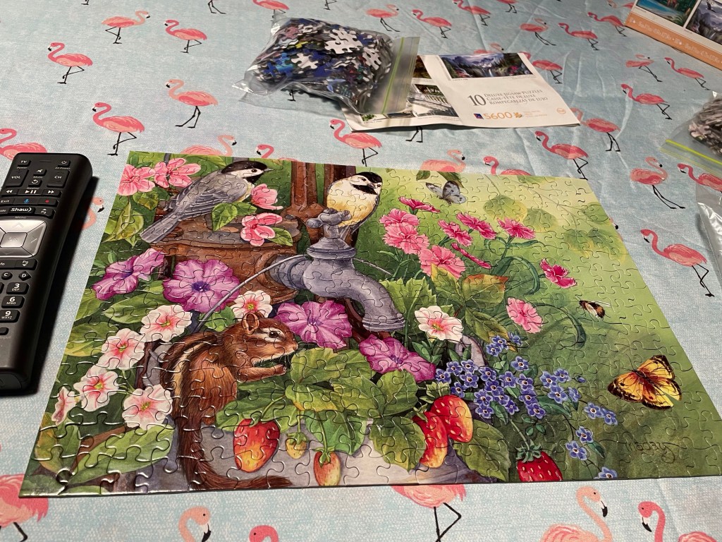 I enjoyed hanging out alone this evening, cracking open the big box of puzzles and starting with one of the two smallest. It was easy and fun.