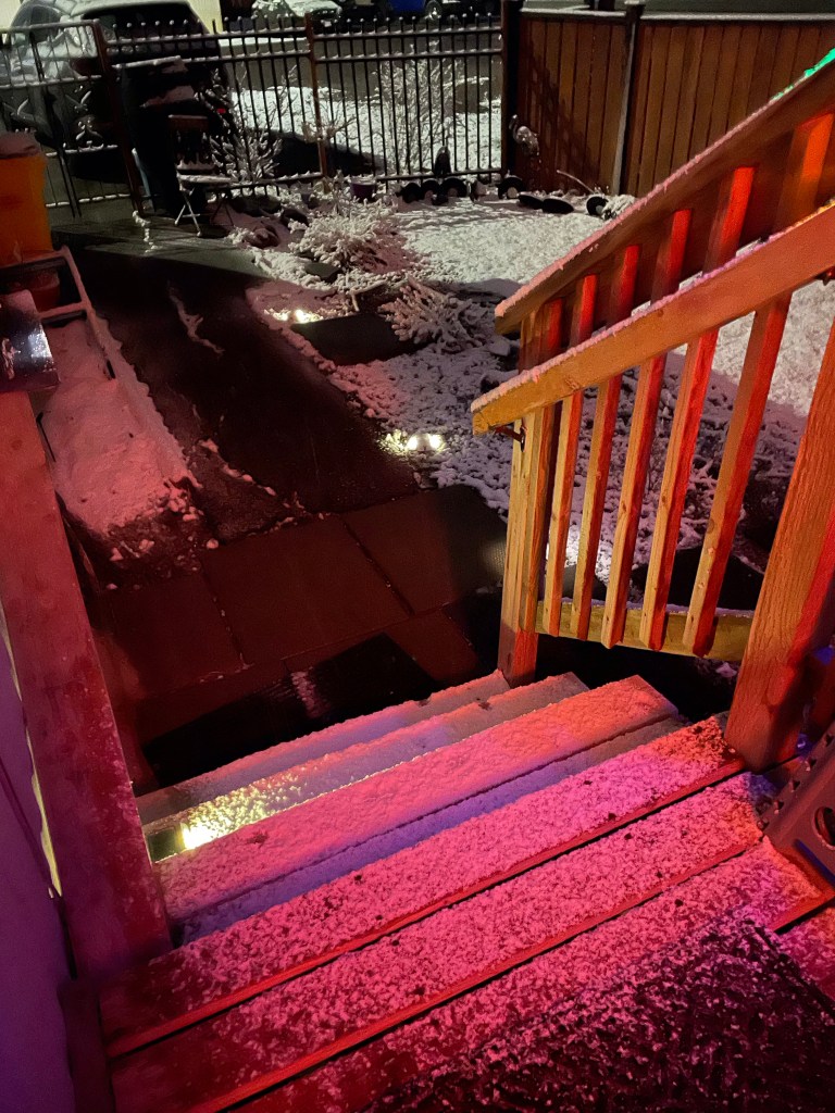 Imagine my horror when I heard oddness of sound vibes outside to see snow on the ground. Come on! I didn’t even put my snow shovel away yet, as that is the usual clue to start snowing again. Hopefully it will be gone by morning.