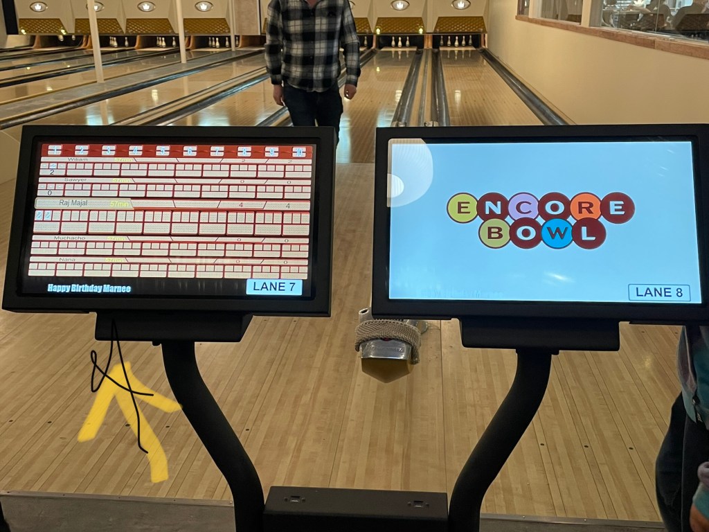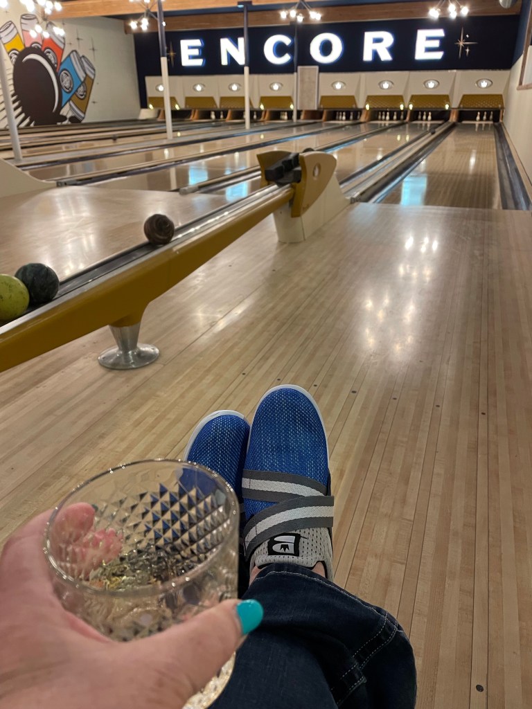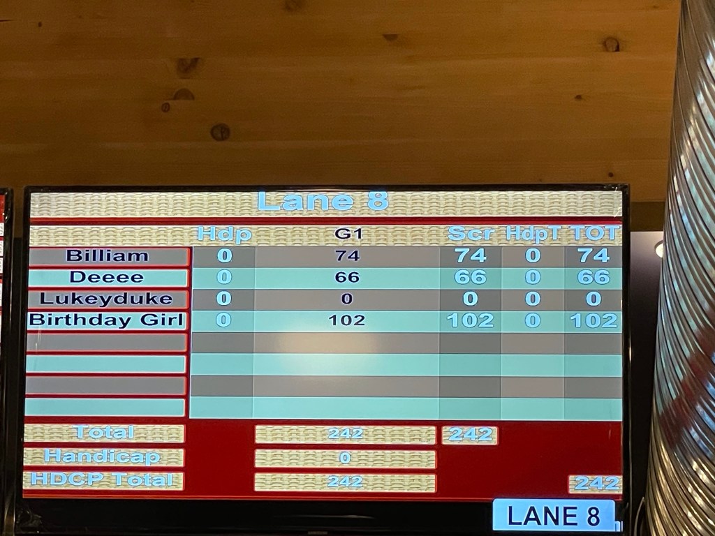 At 5 I arrived at Encore for the friends and family soft opening. It was a lot of fun, and I wore the 60 button that Keri got me. There were so many good wishes and they even had Happy Birthday Marnee scrolling across the bowling screens. We ate and visited and bowled and had a great night. This is going to be a great spot for Cranbrook.