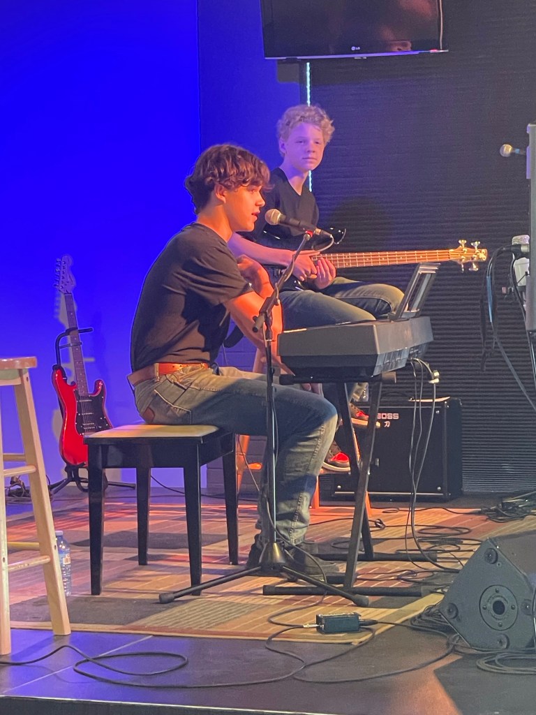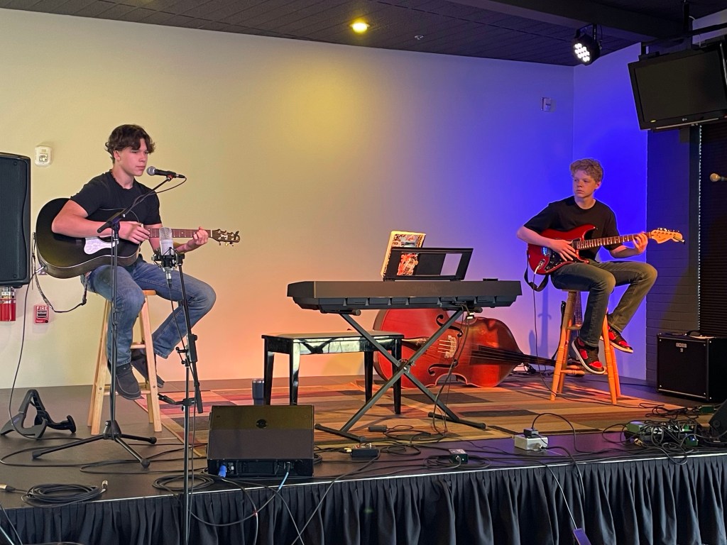 Tonight was a blast at Winter Ale. Jack Spring (16) and Matthew Kumpula (15) opened the night and I was so proud of them for being all they could be. I gave them ‘The Voice’ speech beforehand, encouraging them to make eye contact and connect with the audience and they did it in spades. They have been playing together since they were 10 and are developing a great presence together. I was questioning whether I should be there tonight, but was very glad I was . They opened for Lonesome Ace Stringband who were awesome! And I must say, just really nice guys. I enjoyed my time talking to John Showman, Chris Coole, and Max Malone. Are these not the greatest names for performers?!