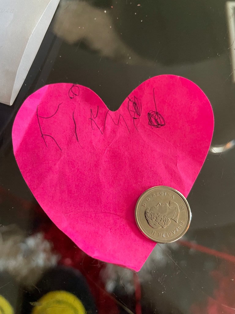 I was looking for my remote and found the note Emmy had written and stuck on her Dad on April Fools Day. Not bad for she hadn’t even turned 6 yet that day.