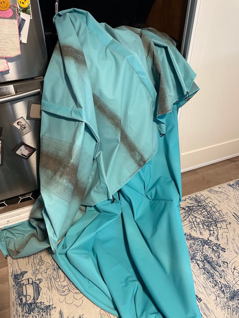 I came home and took apart the canopy so I could wash it. Although it didn’t come out perfect, it’s a huge improvement and will keep the jeep protected. I only had to put it back together twice as I wasn’t paying attention enough in the hot sun. At the peak I saw that it was 27 again. What a big change!