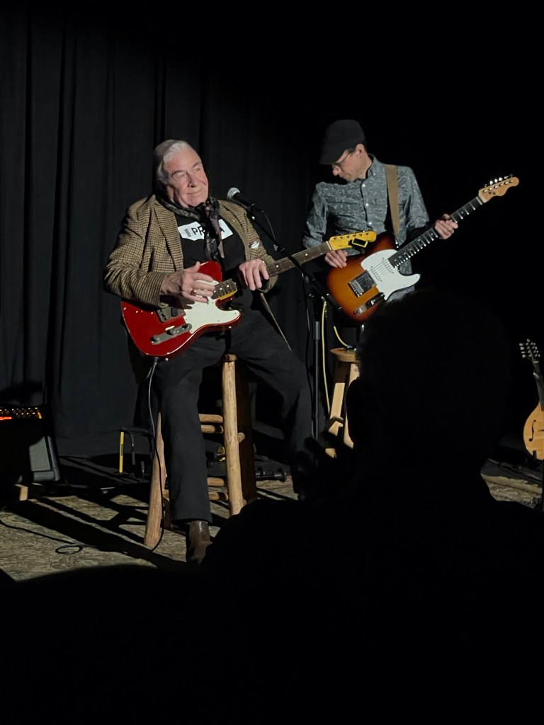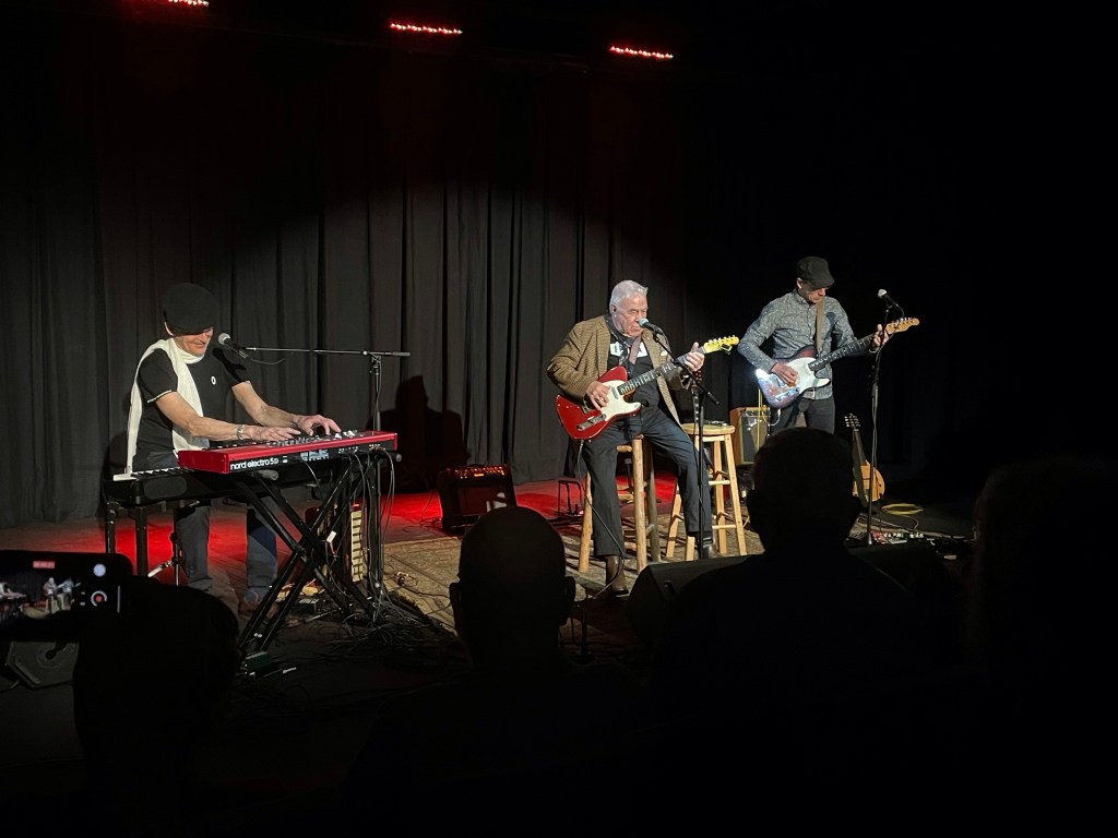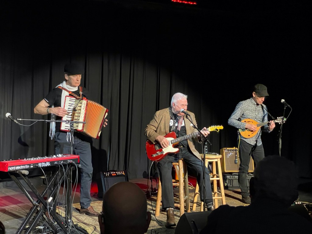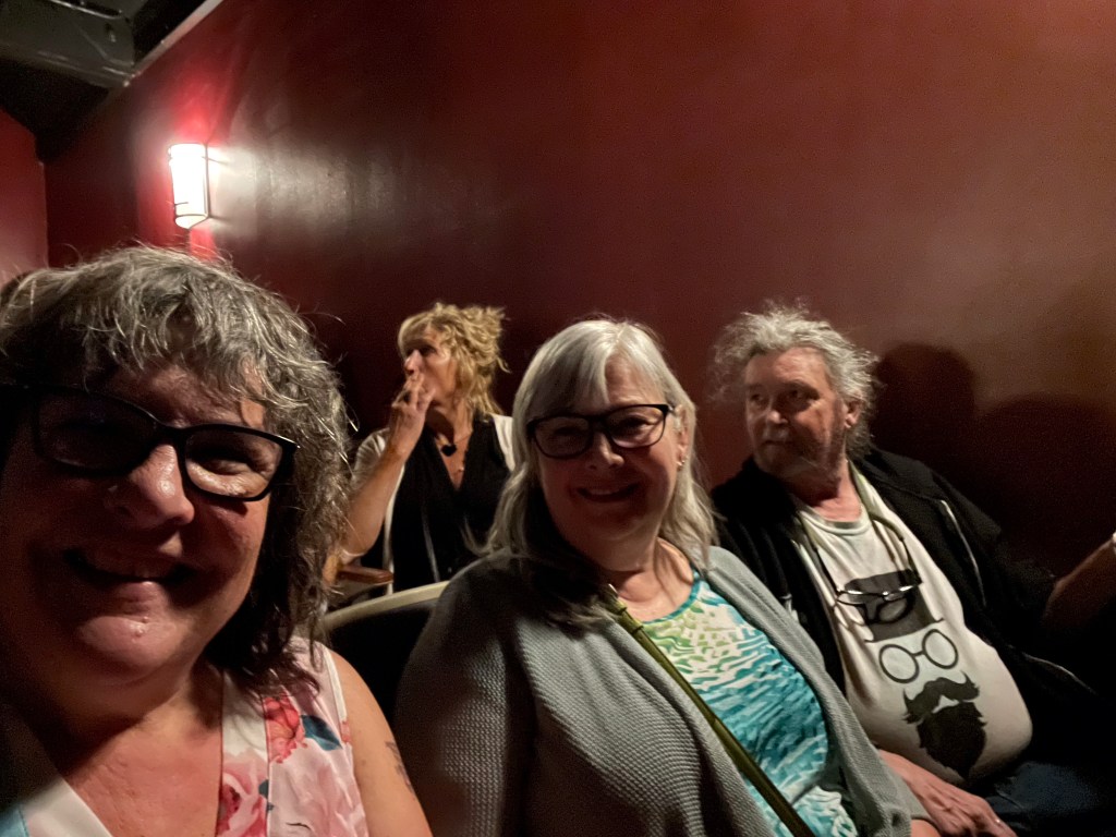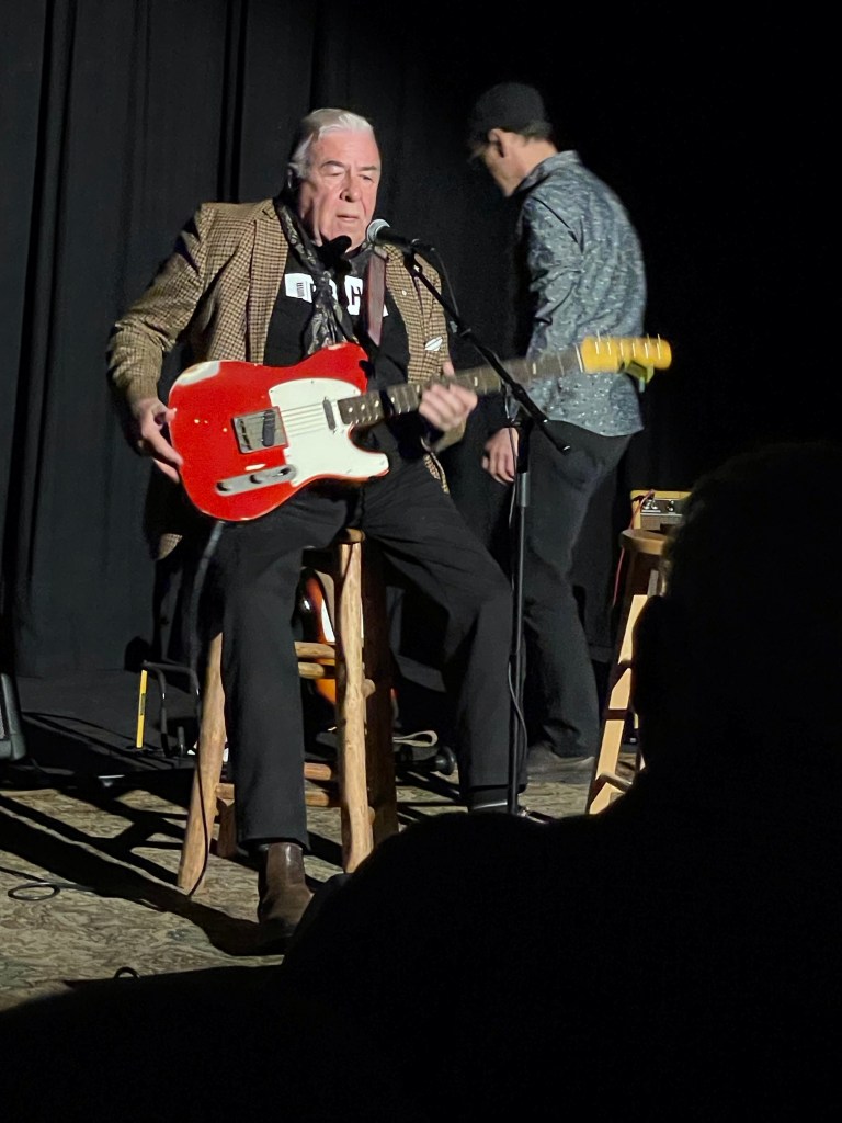 I showered and dressed nice, jumped in the car and headed to Kimberley. I met Greg and Sandra there at Charcoal restaurant and we had a great visit and a delicious meal. I had the Indian style butter prawns. We all went to Centre 64 to see Jim Byrnes play. It is a lovely intimate setting and he along with Eric Reed (Tiller’s Folly and many more) and Simon Kendall (Doug and the Slugs) thoroughly entertained us all. After the show I went down front and Jim said hey I know you and we had a hug. I have been blessed several times at MusicFest over the years to be his person when he is on site, driving him around in my golf cart, etc. Last year we spent a lot of time together, chatting and it was good to see him play when I had time to enjoy it.