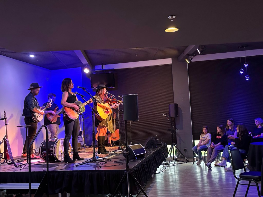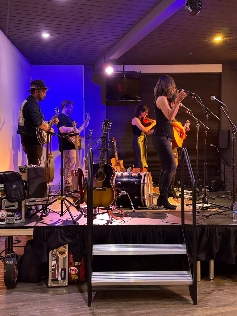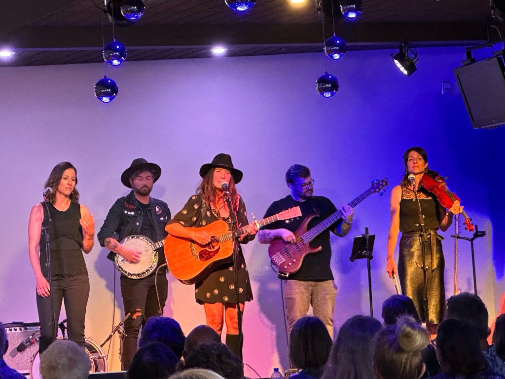 Another very full day. Got to the office to get the last of 15 payroll due between yesterday and today. That is… a lot. And after the weekend I was tired so I had to extra review everything, but I got it done. In between, I ran home and sold my pool, and made payments for clients. By 4 I was done at the office and ran over to Key City to host the last night of Fisher Peak Performing Artists Winter Ale series. It was a packed house and great energy. Tenise Marie opened the show. She is and Assyrian Canadian from Argenta BC and a simply lovely singer songwriter. She even performed, for the first time, a song in her own language. Even not knowing the words, the song was beautiful. She played an Oud, said Oood. Her lovely human energy was like a warm hug. The audience loved her. The headliners were Wild Honey. They have a pretty great pedigree. Jessica is Rob Niedermayer’s wife and Barney Bentall’s daughter. Shelby Knudsen is and author and talented songstress. Laura Cain is a talented violinist and songwriter. Between them they bring beautiful harmonies and a type of ‘sister’ power that resonates. Between them, they also have 8 daughters and set a fabulous example. They were joined by Ryland Moranz and Sammy (omg. I forgot his last name). Just before my intro of the all female trio, I told them I was going to introduce them as Wild Honey and the Bees. They loved it. So did the audience. It truly was a wonderful way to end the Winter Ale Series. I had Jordon and Heidi from Fisher Peak Brewing Co, our major sponsors, do the draw for the season’s door prize, a signed poster and swag from the season’s artists. After the show I chatted with Jessica that about the fact that I was fangirling over her husband being in the audience. I told her about my first Duck’s jersey and how the team brought me joy all the way through my pregnancy and single motherhood. She told me I was to grab her next time and say, “Hey Jessica, introduce me to Rob!” I am going to take her up on that.