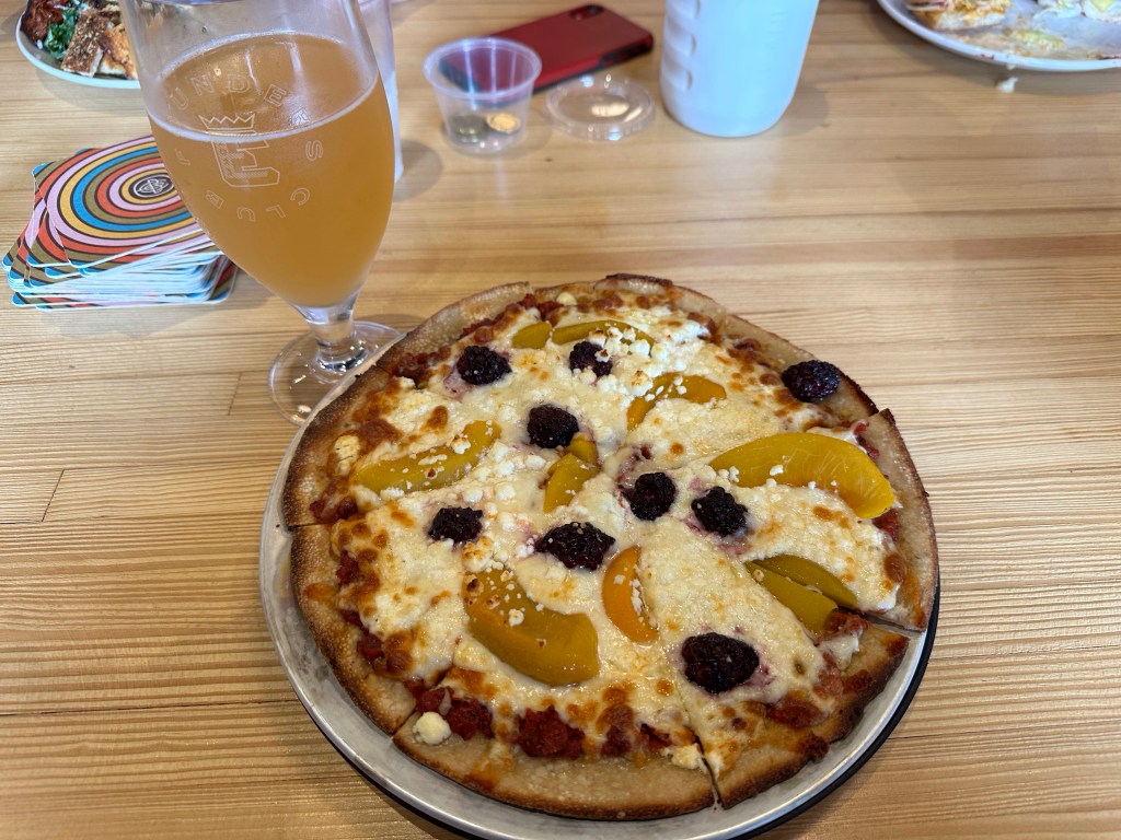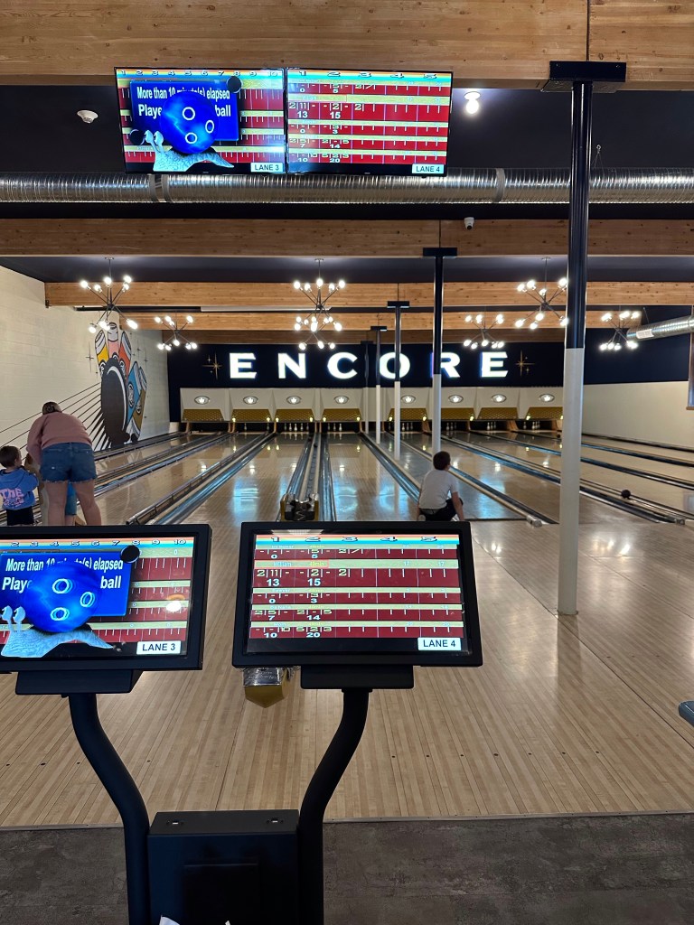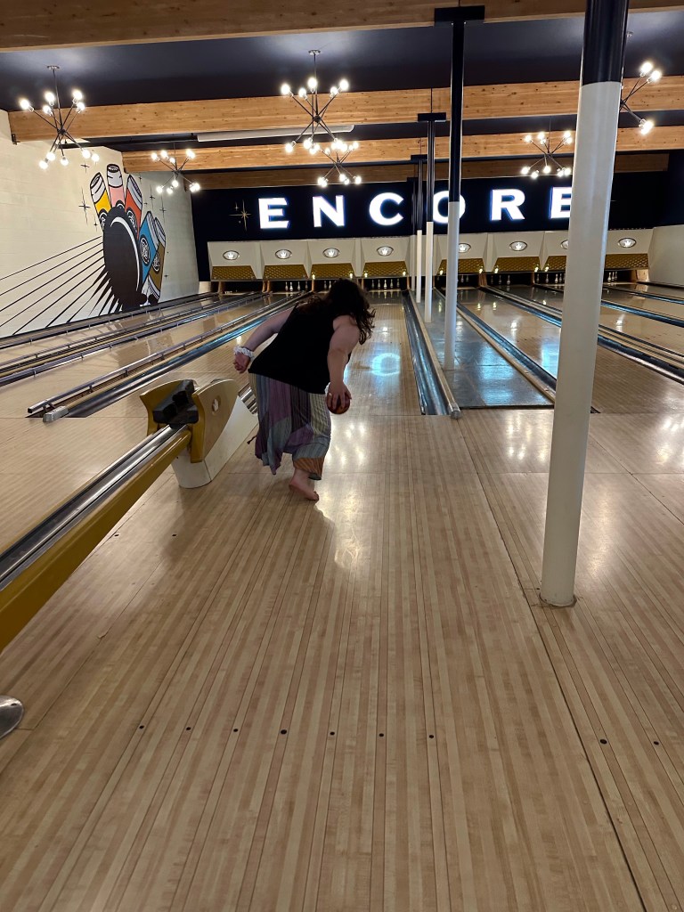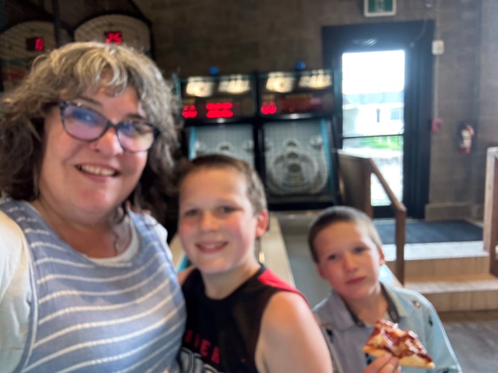 I had only a plan to get fuel for my lawnmower and check out Mom’s apartment today. I ended up meeting the family at Encore when they were done church, ordered the last Goat Pizza complete with Peaches, Blackberries and goat cheese, which is leaving the menu, sadly, and then bowled for an hour with Lukas, William, Sawyer, Rae and Roger.