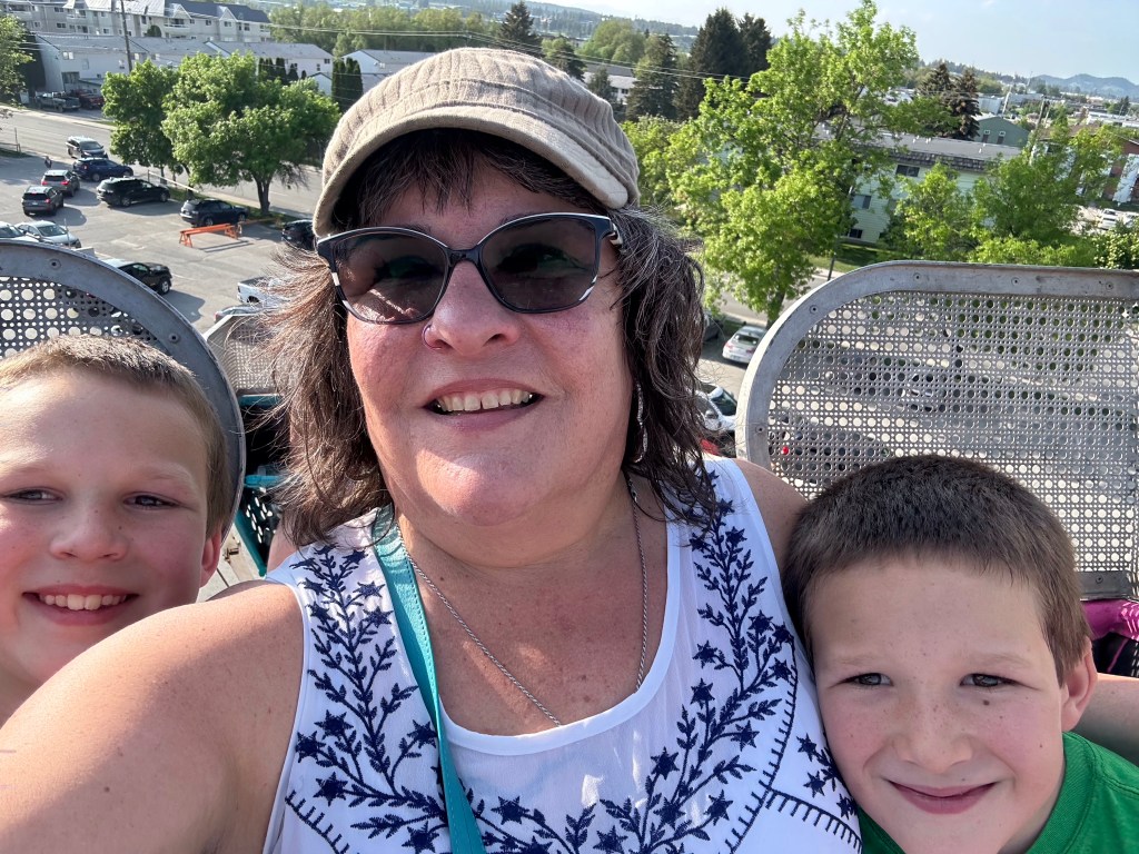 I had to go back to the office and work on getting a bunch of wage subsidy paperwork done for a client and was nearly done when I was sent pictures of Rae and the boys at the fair in town. I had forgotten all about it so I finished up and headed there. I am so glad I did as I got to ride the Ferris Wheel with Will and Sawyer. Neither of them likes heights but they trust going with me and I love that ride. I bought mini donuts to bring to my poker game while I was there.