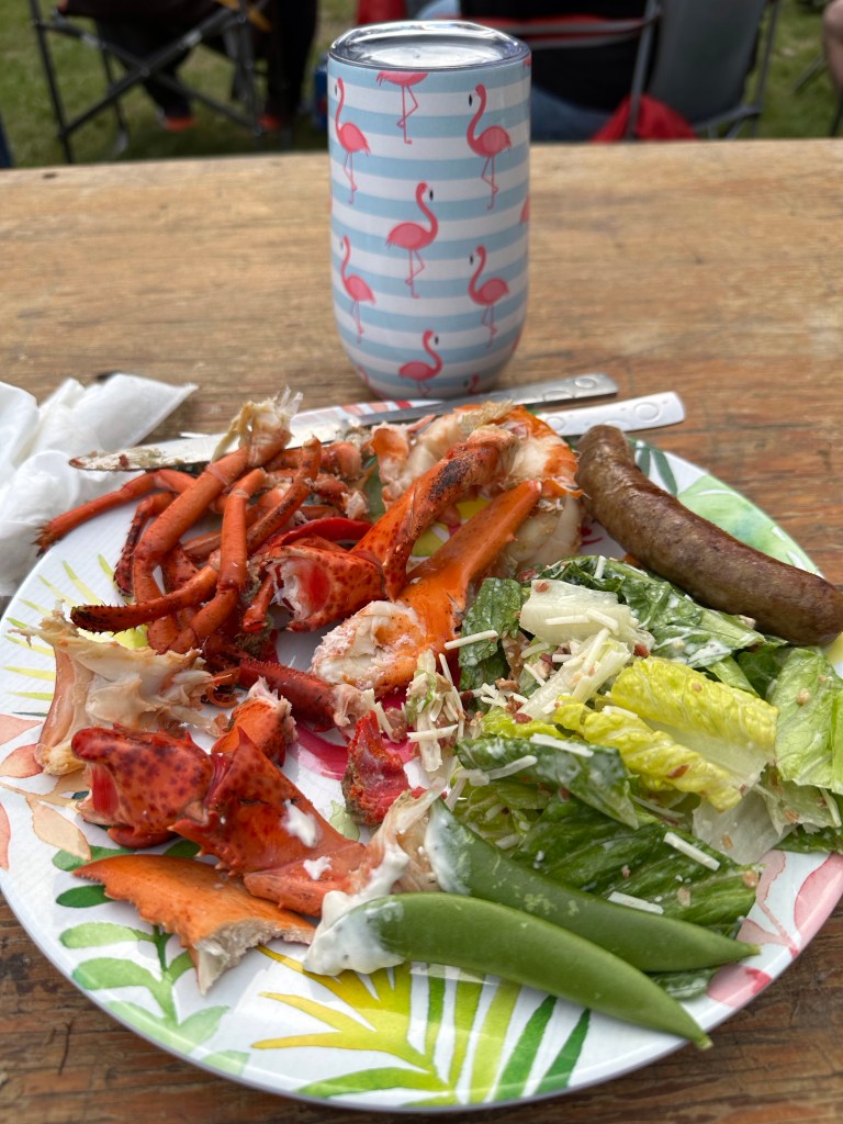 I puttered at some chores and watched shows after having a sleep in. I wavered back and forth with social anxiety about an invitation to a party a half hour away in Meadowbrook. It is an annual event but this was my first invitation. The invite was actually for last night, to come and camp for the weekend and have lobster and prime rib. I finally took my recycling out, picked up makings for a big Caesar salad, packed my cooler and headed there. I am so glad I did. It was a lovely smaller group as last night was 80+ and I was able to have a few very nice longer conversations with folks I have known casually for a few years and with others I haven’t met before. There were lobster left over from last night and I decided to pay and enjoy one. Tom Bungay, an east coaster, who brought in the lobster along with his wife Verna, cleaned it for me and showed me all the inner workings. It was filling but I still think, overrated, as my favourite is Dungeness Crab. I am glad to have had that experience though and the music playing was wonderful. So many old and new friends doing what they love for our enjoyment. Next year I plan to camp for the weekend and just relax.