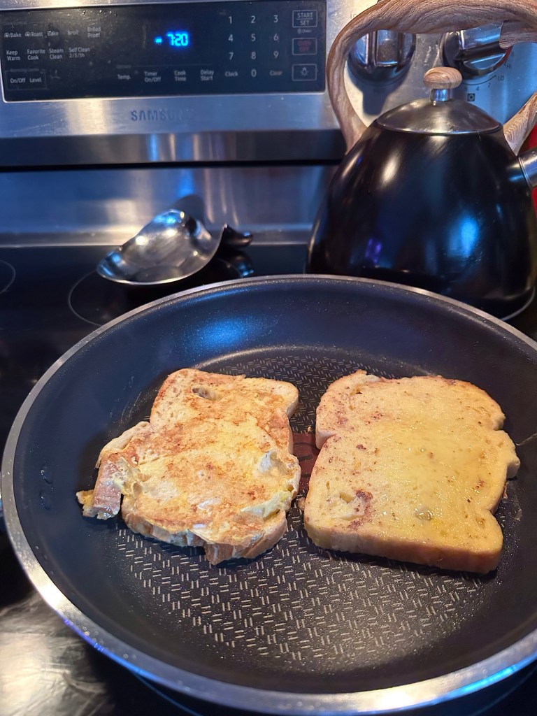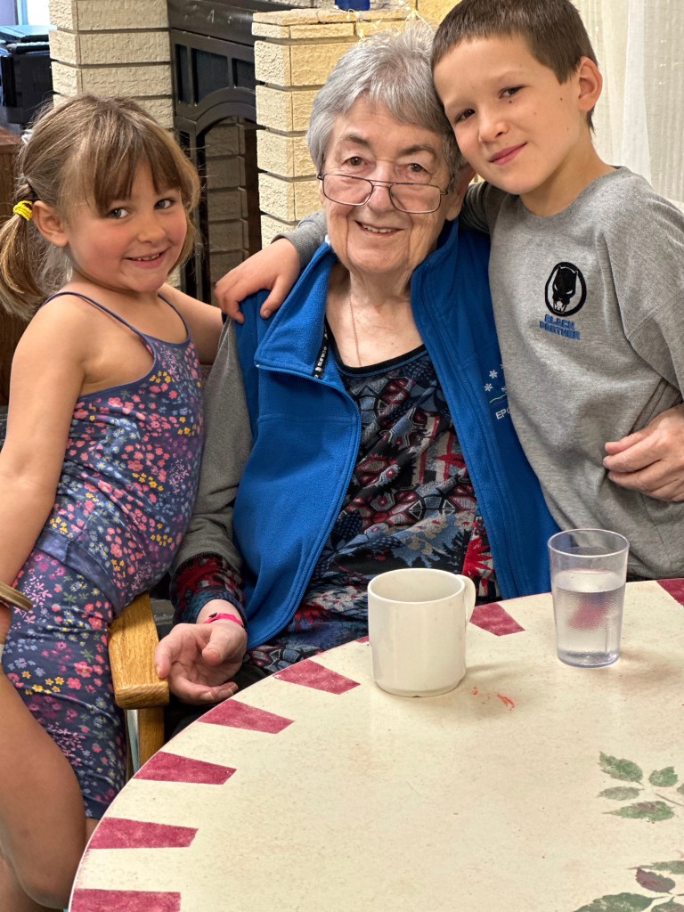 The kids were awake well before 6. I learned later that Emmy woke up Sawyer who just wanted to sleep some more, bless his heart. I finally got up after a snuggle with them and made French Toast. eggs, vanilla coconut milk, and the mixture of hot chocolate from stockings past with Dutch bread made for a delicious breakfast. The kids ate 3 pieces each! We then got ready including scrubbed nails, hair do and painted nails before we went to Green Home to visit Grandma Judy and GG. They were both surprised and we had a nice time.