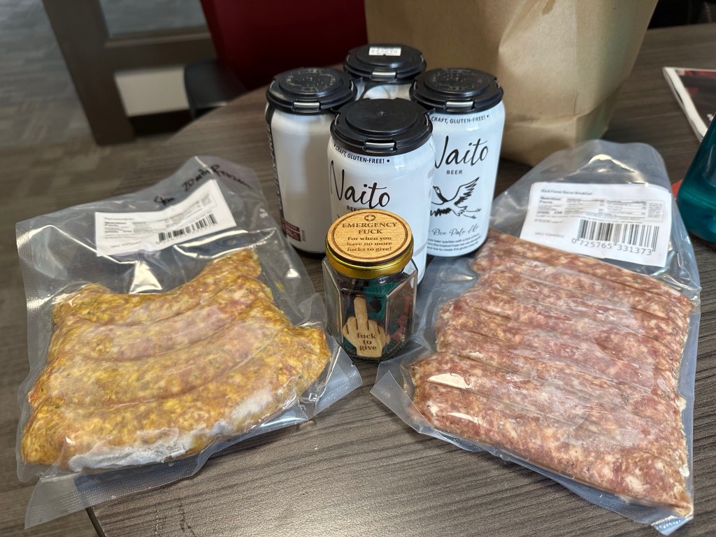 Next we went to the Guedes house so the kids could play in the yard. While we were there I confirmed by text with Roger that they did not want the CombiCamp back. I placed a message in the Facebook group for owners that it was as is, where is, for free. We then walked down to the Saturday market and while the kids played in the water park and on the playground I wandered the market and purchased a few things. It was the first one of the season and there was much to see. Rae-Anne met me there and took over as I had to go to the office for a zoom meeting of coordinators for VIMF. I bought the kids cotton candy and headed off on foot.