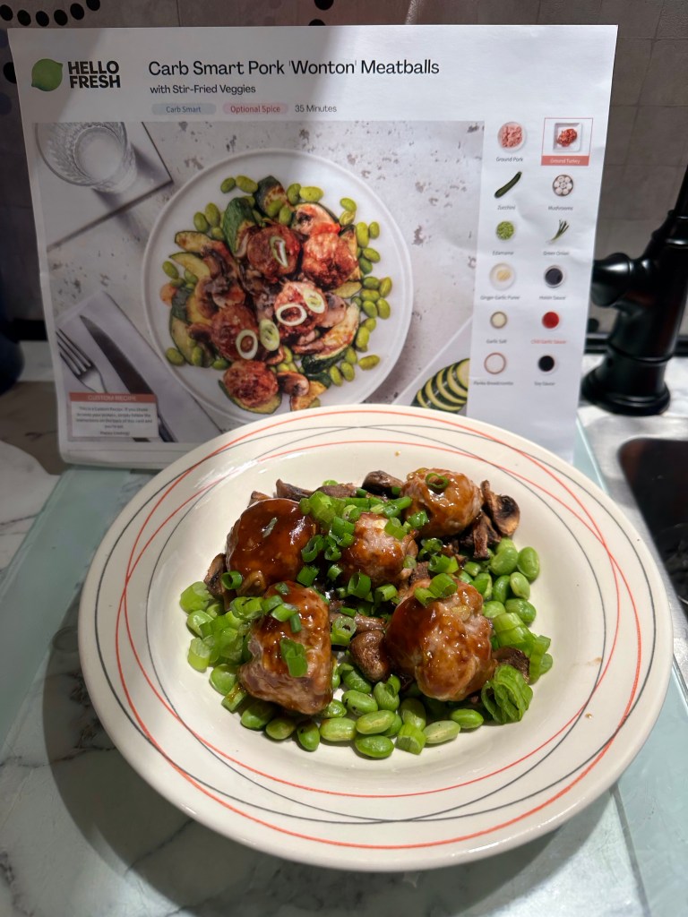 It was a very lat but quite delicious dinner. I didn’t feel like using the zucchini and just enjoyed the meatballs and edamame in Hoison sauce.