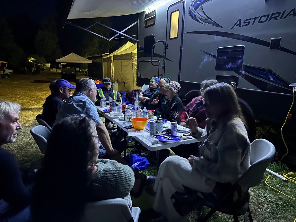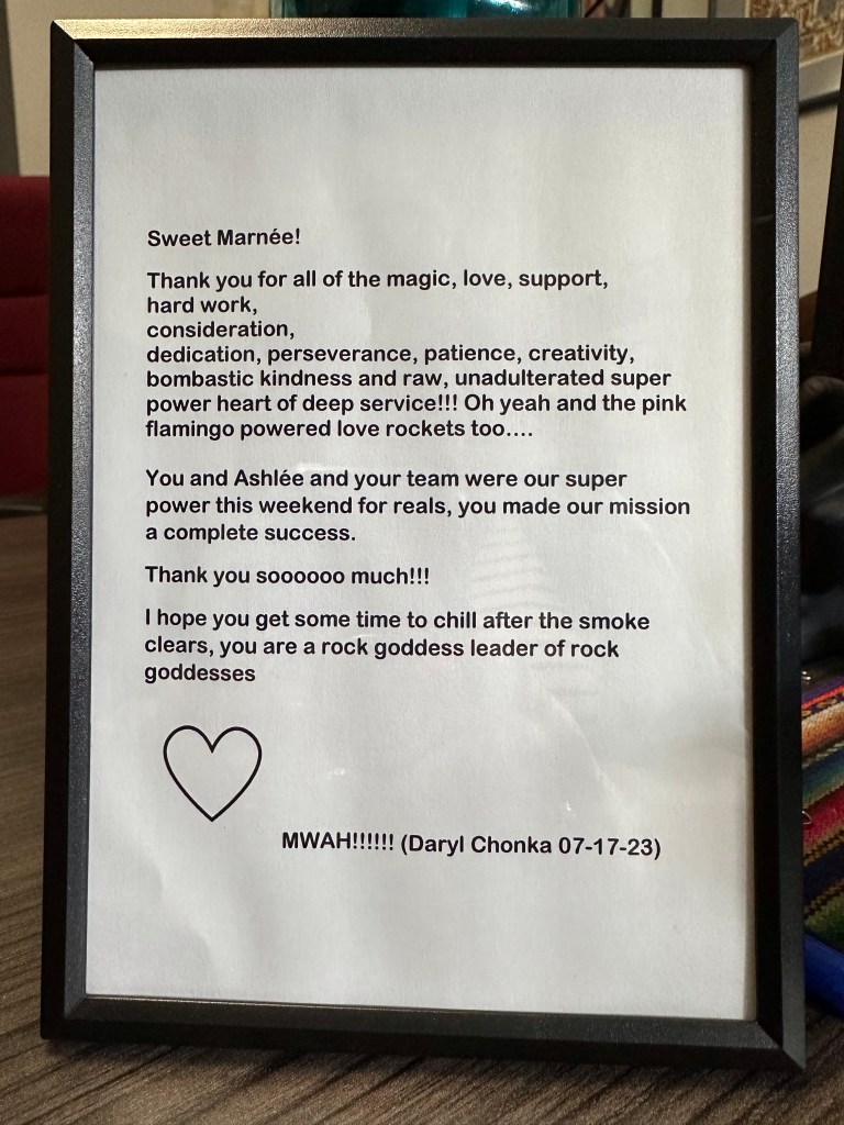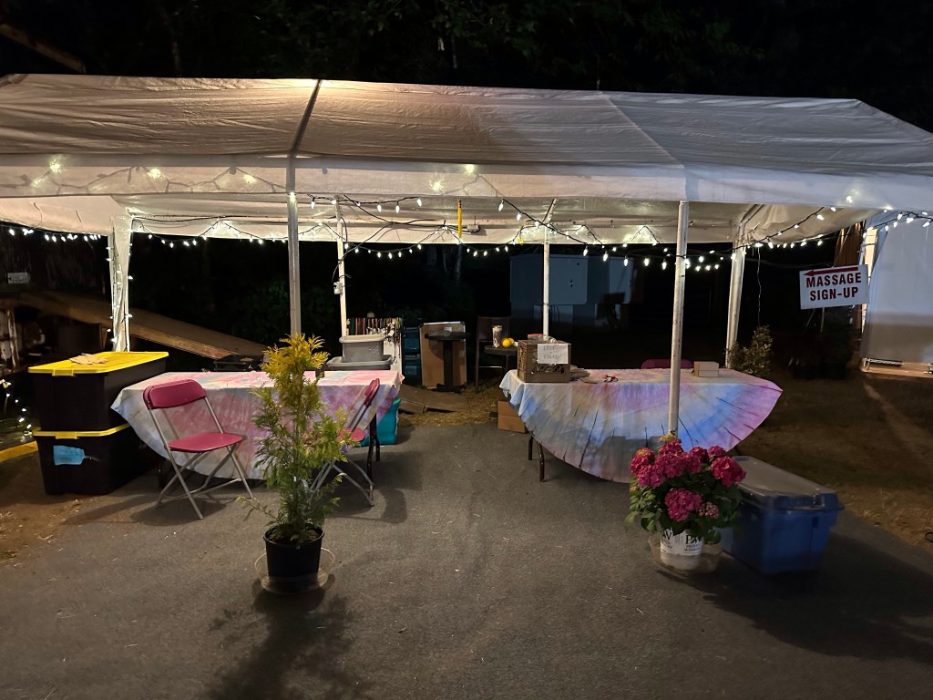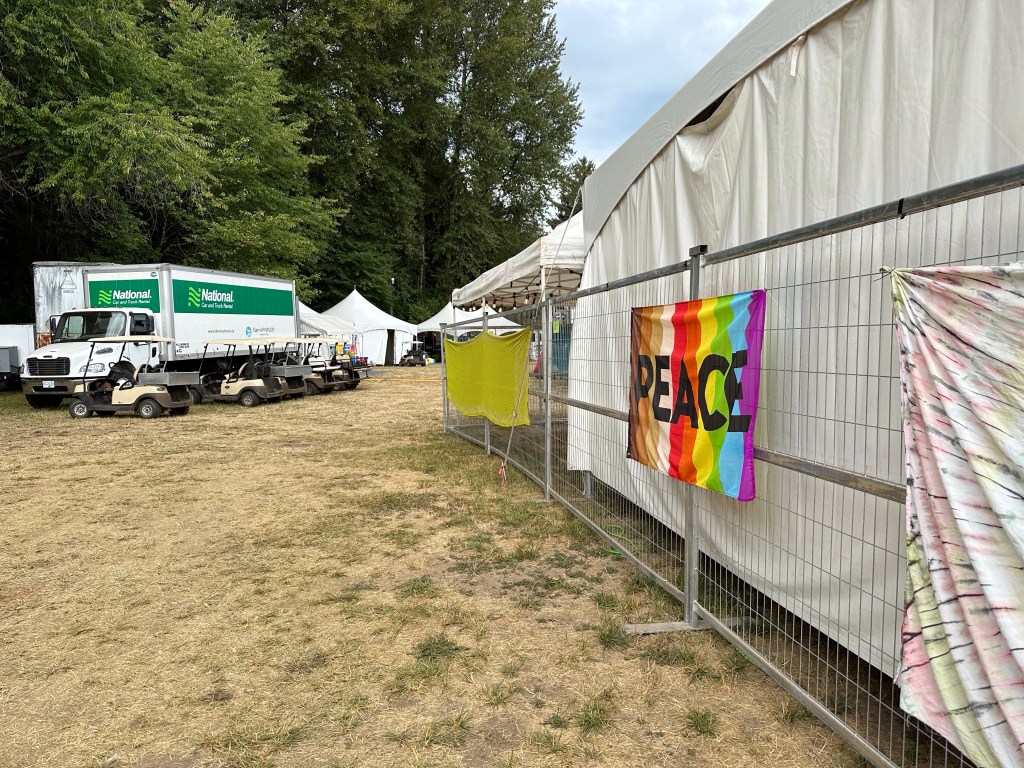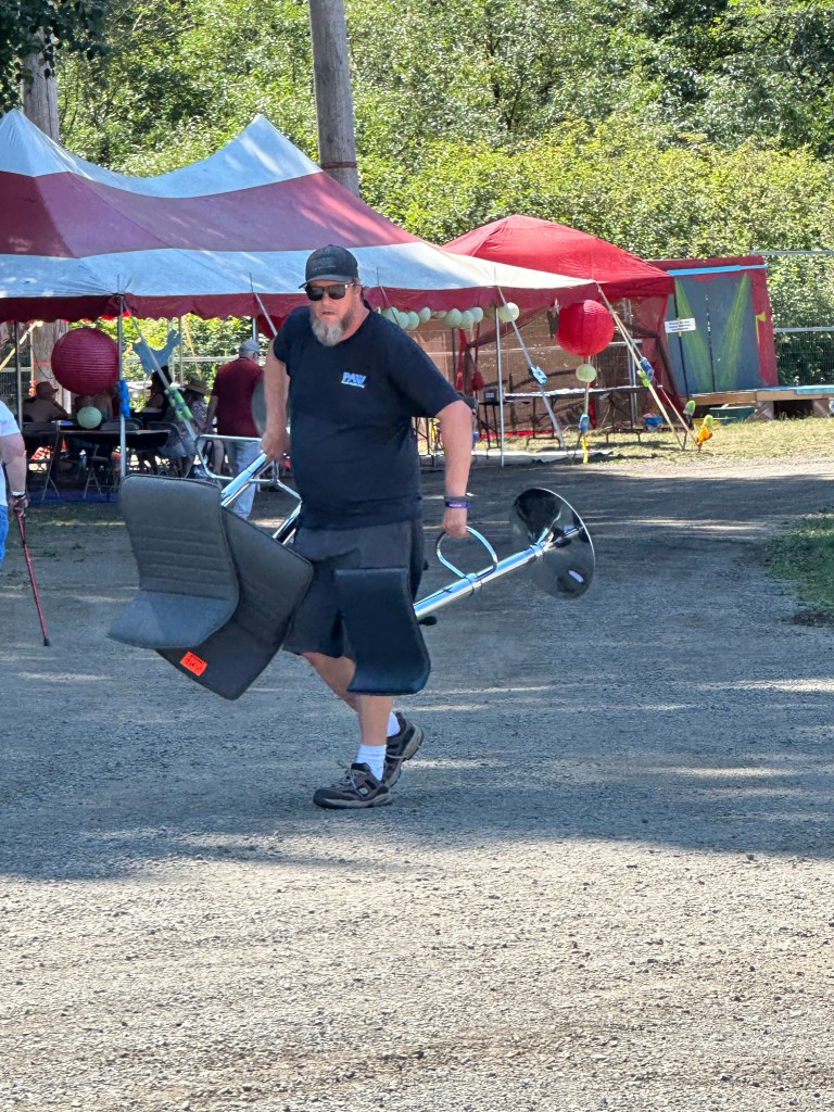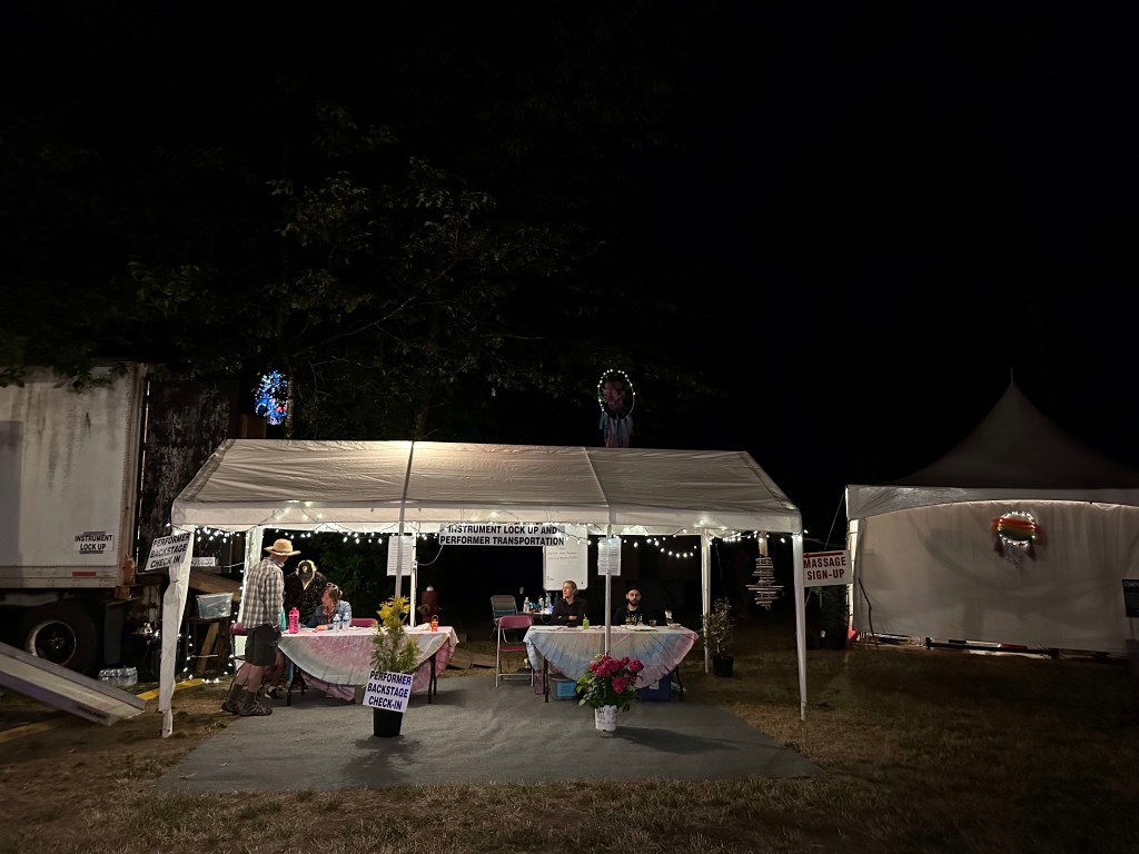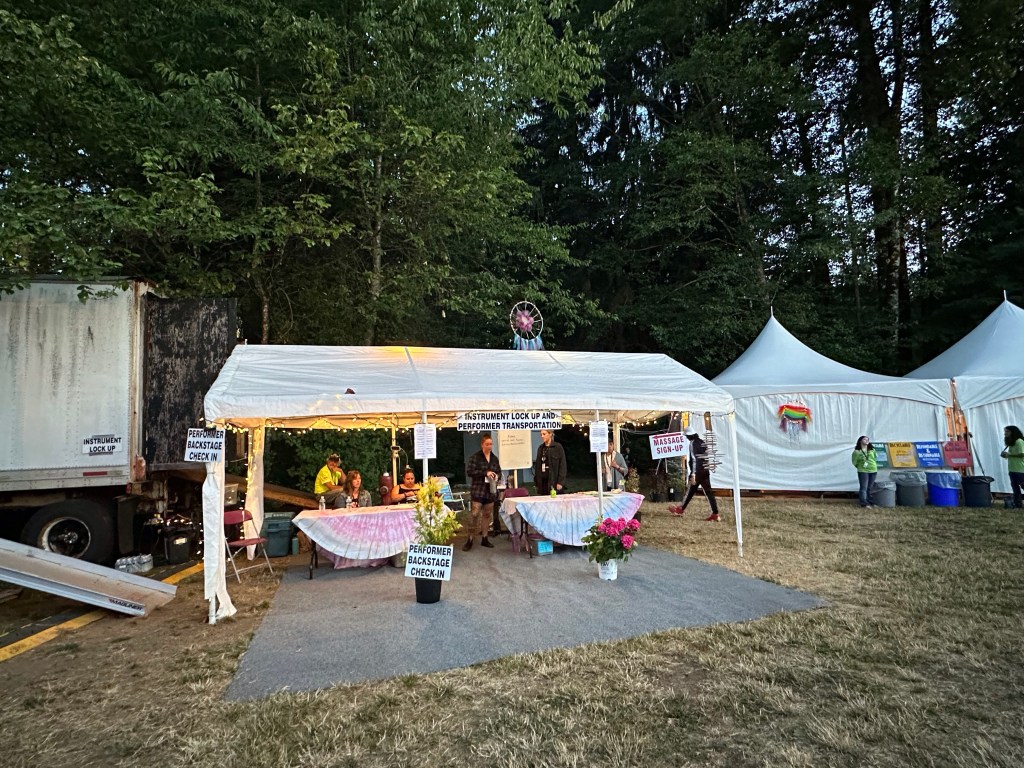 I stayed up until after 4 am, sorting my totes and visiting with Peter from the PAW crew. I was still pretty wound up from the blow out with Ash as she had been terribly overworked due to us being short two HQ crew, the backbone of it all. She stepped up beyond her poor body and brain’s ability to. In the morning, after 4 hours sleep, I was back up to meet the crew who showed up to help and finish taking down the lights and tent decor. Ash got up and we had a good cry and hug and I reassured her that i could not possibly have done it if I hadn’t had her. She makes it possible for me to go do all the stage stuff without worrying about Lock-up. It was hard on us both not to see more of the fest but I am more used to it. I can run on little food and sleep while I do what I have to do. Once everything was done it was time to make a bunch of good-byes to crew and get settled down to once again do payroll. This was a tough year for where the dates ended up, adding a lot to my plate