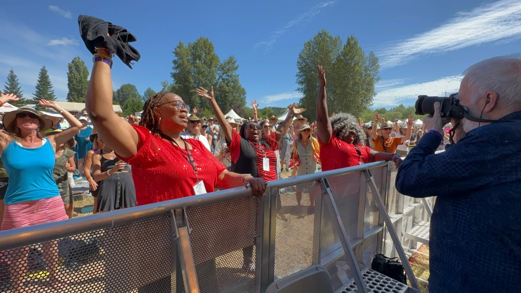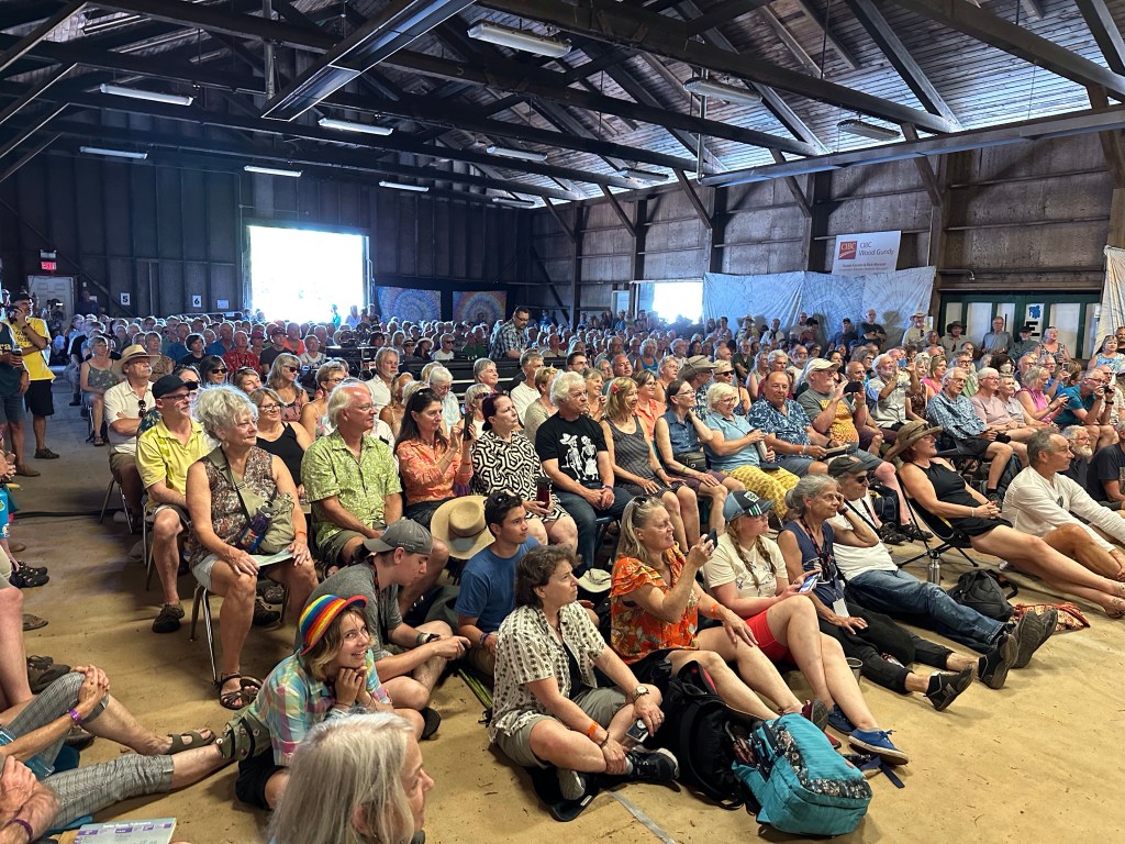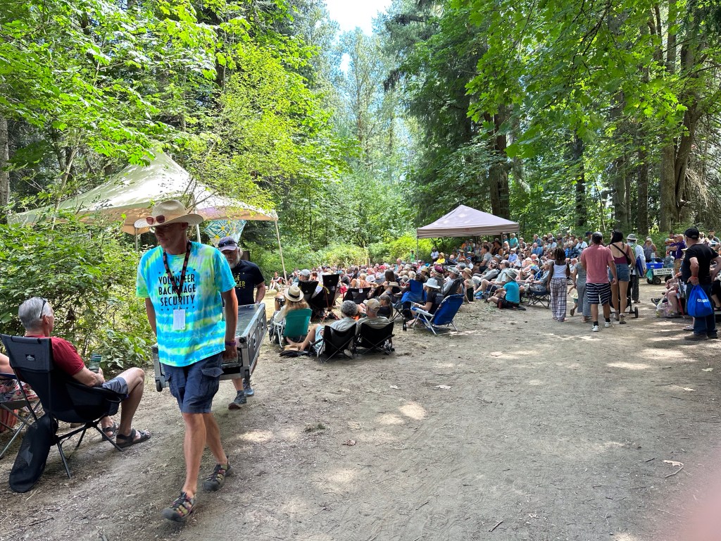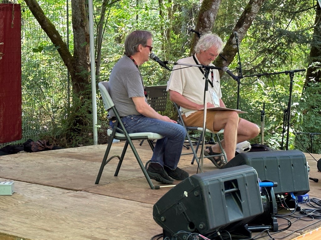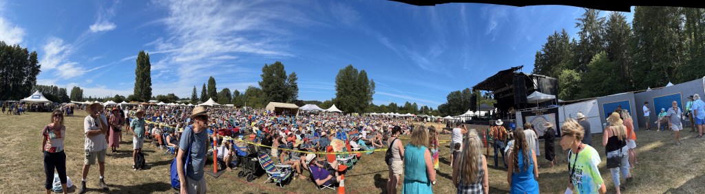 Back at Crossroads, the lovely human that is Roy Forbes sat for an interview with Holger Peterson for CBC. Roy is blind now and I have so enjoyed chatting with him and his wife Lydia and making sure they are transported around the grounds as needed. They truly are the definition of a sweet couple. Later in the day as I was supervising the shutting down of the outer stages it was lovely to listen to him performing on the concert bowl stage.
