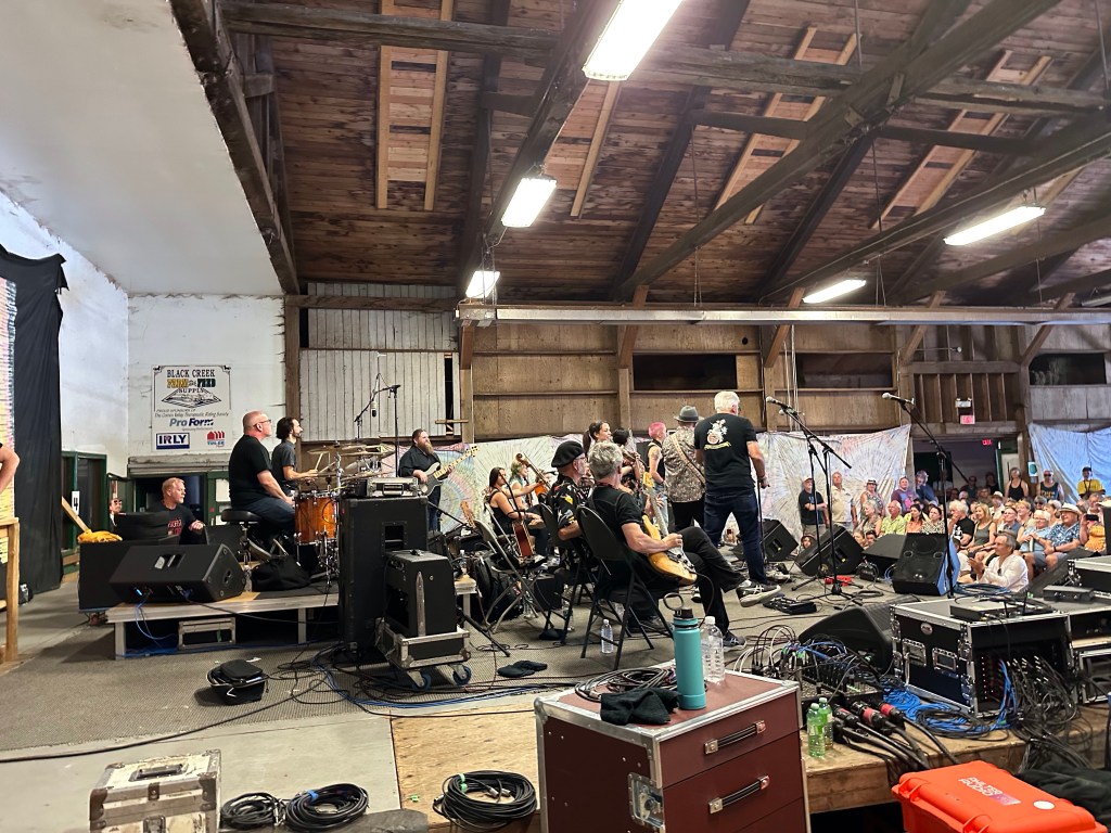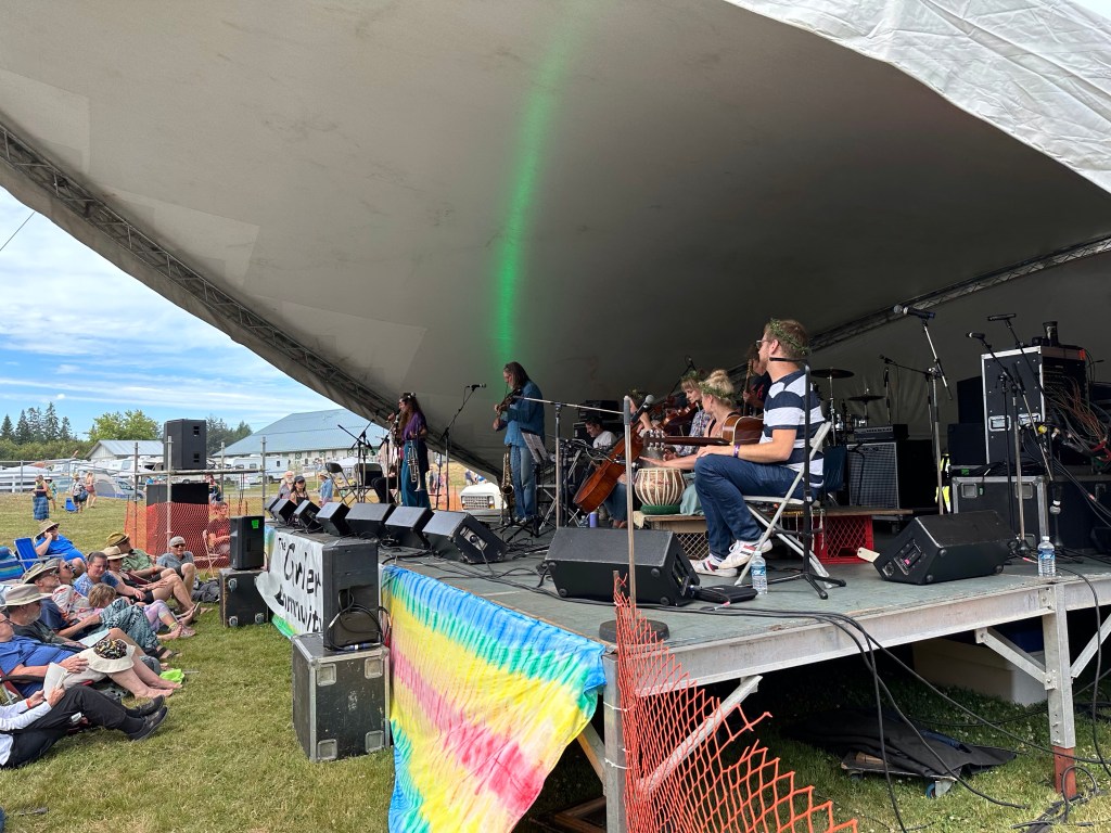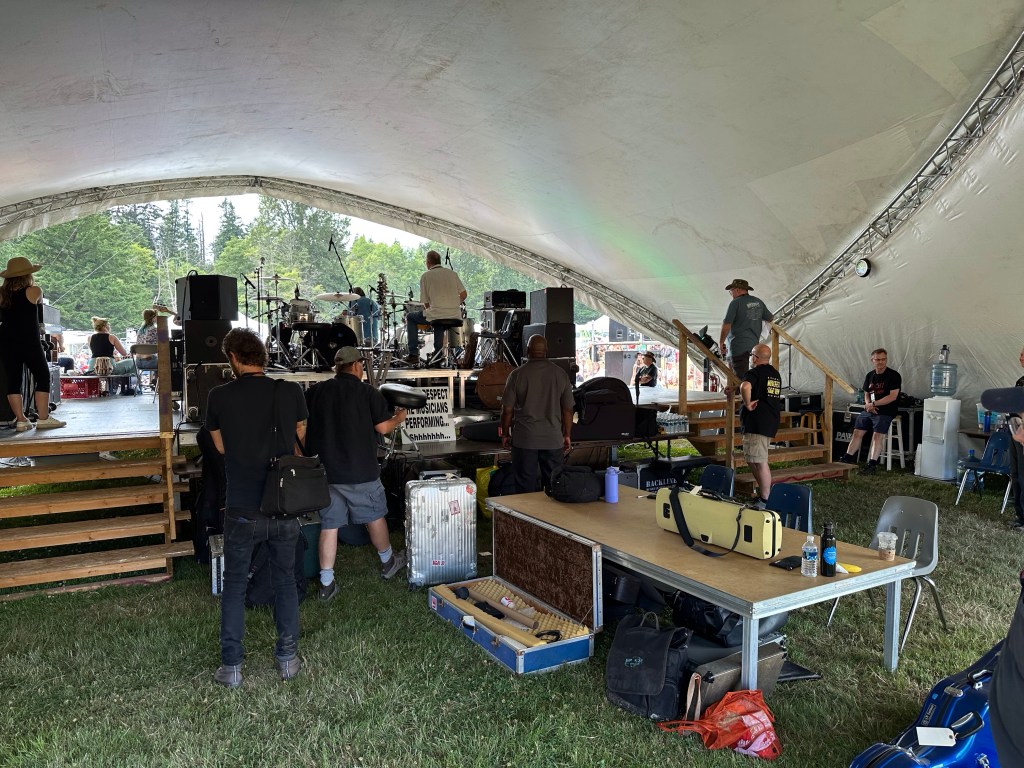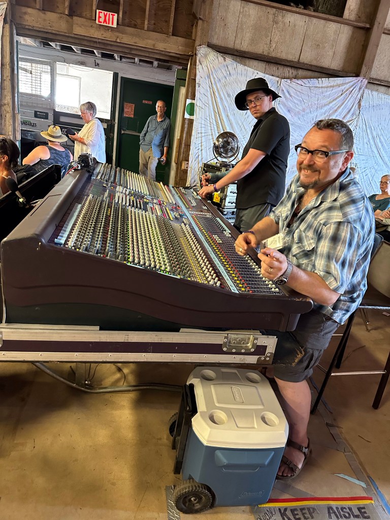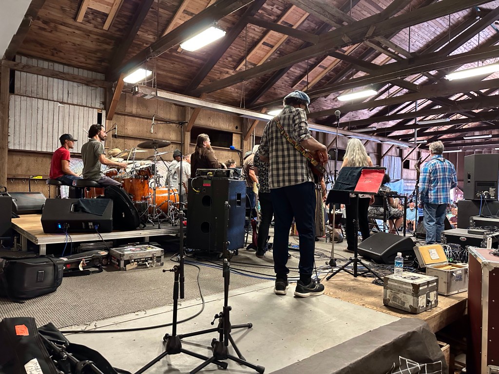 Meanwhile, back at the barn, I was not always happy to find things were not running smoothly. This was in great part due to someone who rented gear to the fest and then insisted that they be the ones to handle it. Brian was constantly usurping the power of the stage manager and I had to wrangle that stage constantly, or so it felt. Fortunately, my stage manager is Eli, a most lovely human being and my whole crew stayed calm and patient as they were being treated, not as kindly by some of the paid staff. Tomorrow will be a very different day. It was lovely to see the McKenty family performing as The Awakeneers on that stage as they are usually the stage crew along with brother Eli.