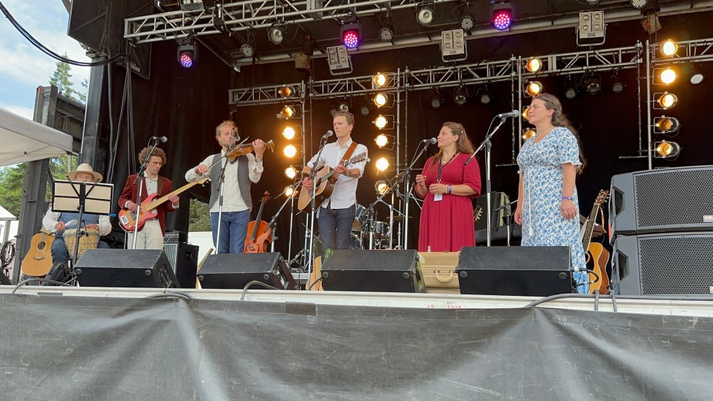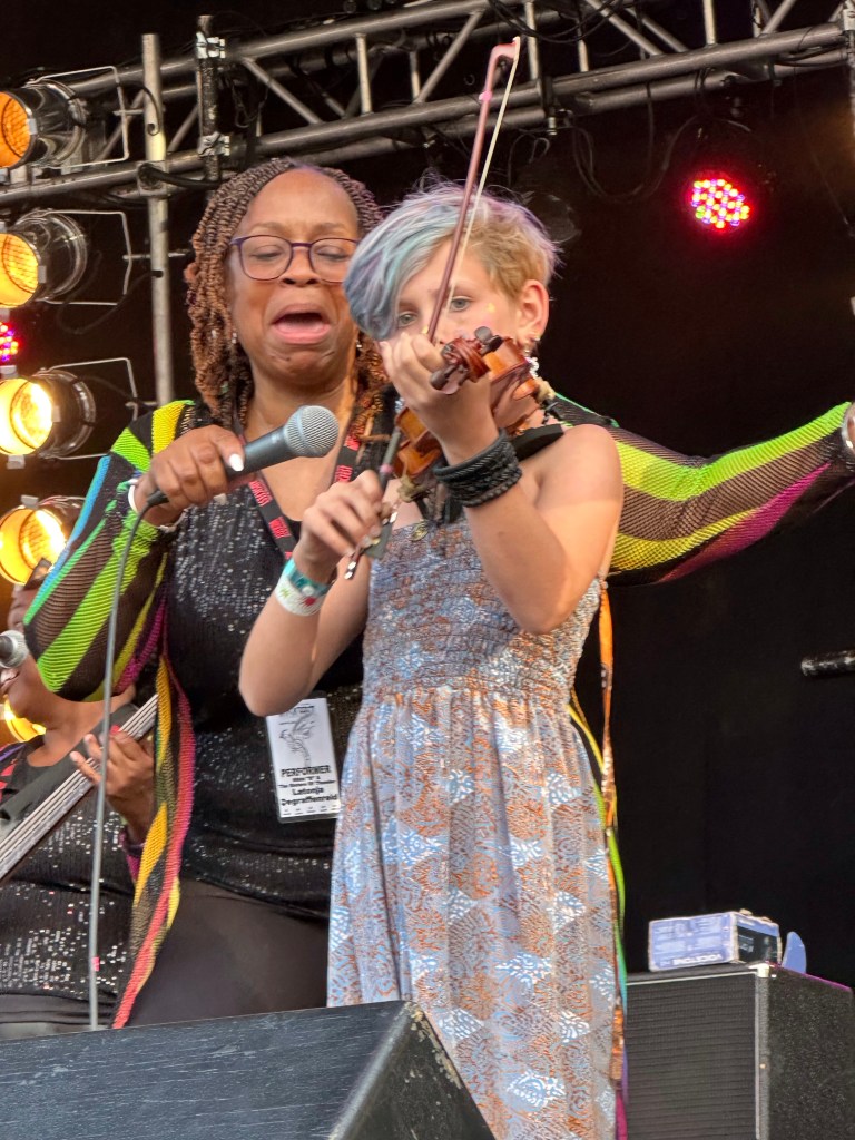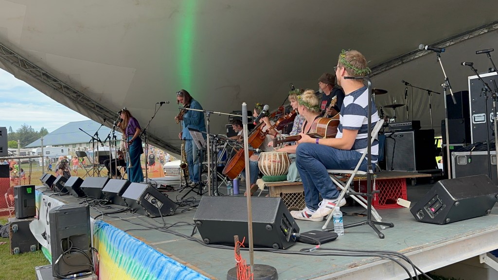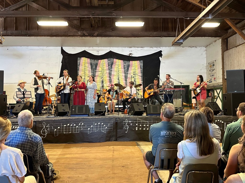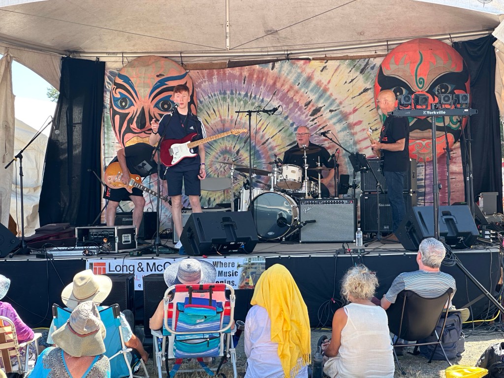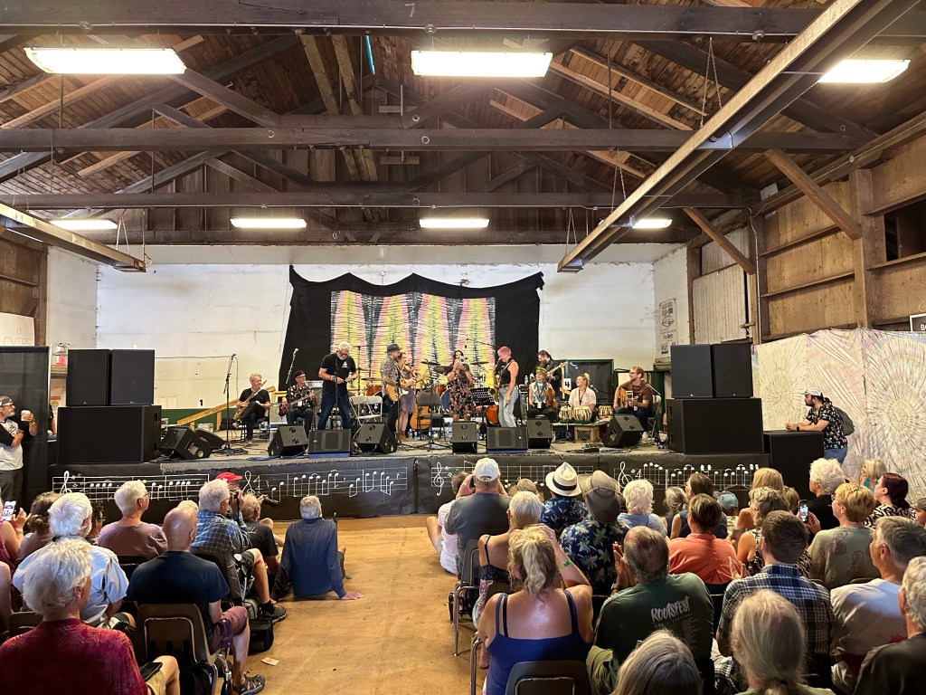 Meanwhile, back at the barn, I was not always happy to find things were not running smoothly. This was in great part due to someone who rented gear to the fest and then insisted that they be the ones to handle it. Brian was constantly usurping the power of the stage manager and I had to wrangle that stage constantly, or so it felt. Fortunately, my stage manager is Eli, a most lovely human being and my whole crew stayed calm and patient as they were being treated, not as kindly by some of the paid staff. Tomorrow will be a very different day. It was lovely to see the McKenty family performing as The Awakeneers on that stage as they are usually the stage crew along with brother Eli.