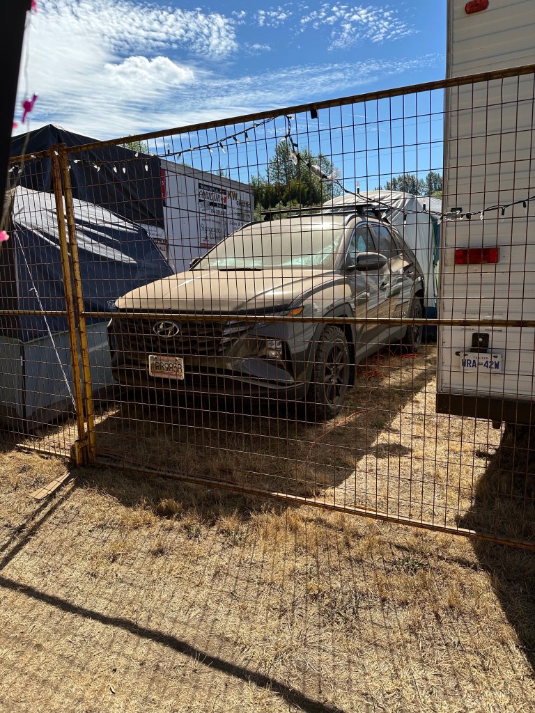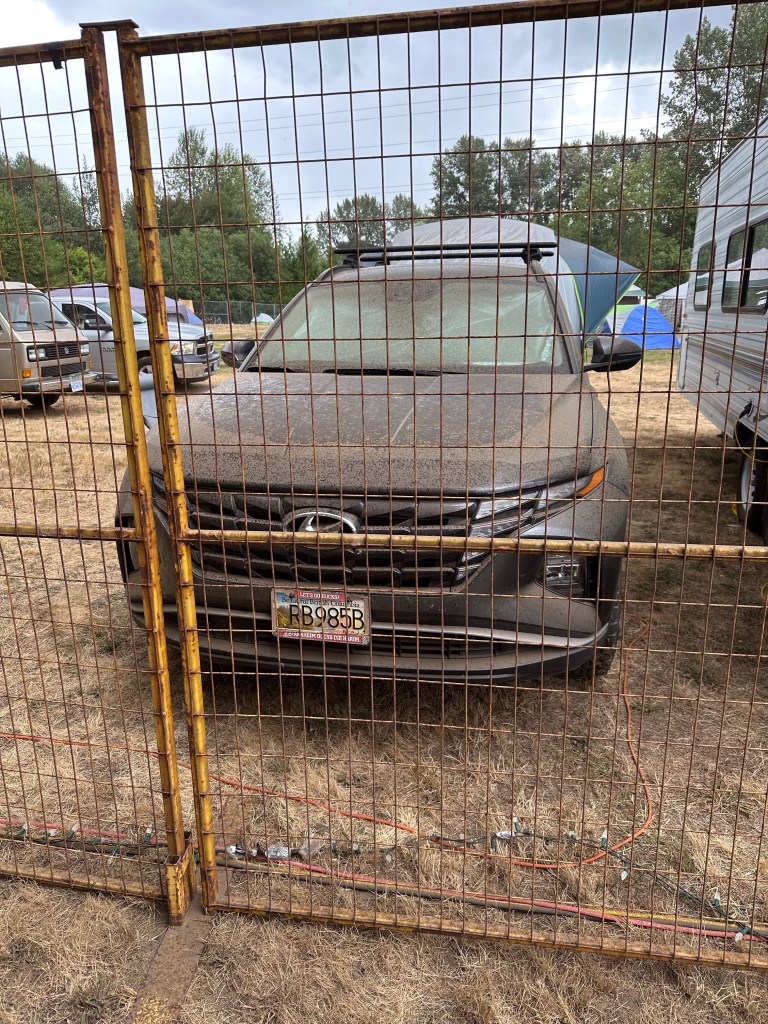 It as warm in the morning and I had lots to pack up. The site is nearly torn down already. It is quite amazing. I took the time to pack everything, keeping in mind that I would be crossing the border the next day. Once everything was done and I’d had a shower, I made my rounds to say goodbye. The bulk of people were gone already but I had a good hug with Cresslynn and Jean.