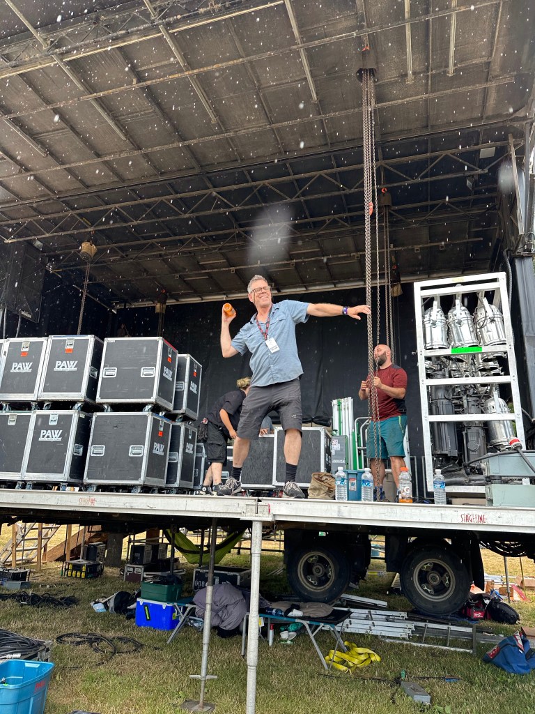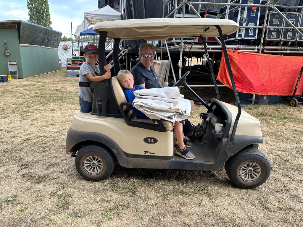 This is what we do, transport these glorious people and their gear around the site and provide gear and crew to make glorious music
