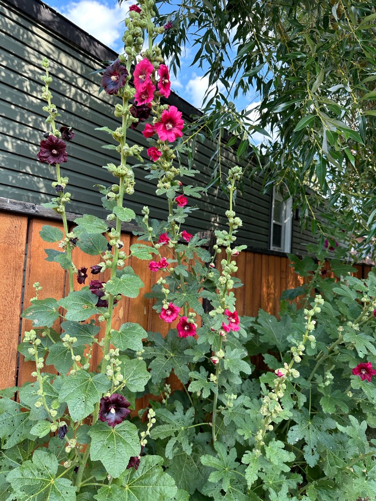 HollyhocksThe garden took over while I was awayPère and LukasNikki, Fred and JeffRae, Tanner and Ashlée Dee and RogerTried Pano on my phone held differentlyBirthday boy with the custom label I put on a bottle for him.