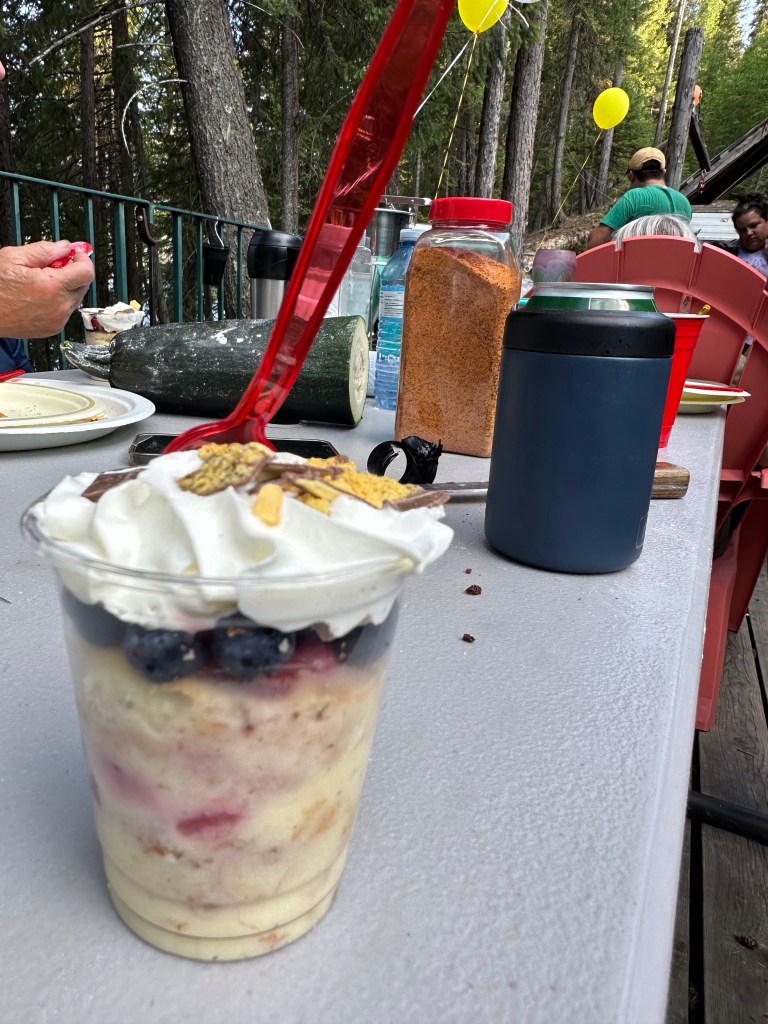 I awoke too early, probably from all the lists running through my head. Also, the itchy rash that developed on my arms and legs yesterday is making my lose my mind, so I took an epsom salt bath in order to be ready for the cable guy’s arrival. he was to come between 8 and 10 sometime. I was needing to get to the office, but when he arrived at 9:45, I was grateful that we discussed the options and he connected two new wireless digital boxes and got me them as a free upgrade for the trouble. While he was working, I puttered unloading the car, doing 3 loads of laundry and watering my plants. Then it was off to the office. I slowly worked through my email and texts, making sure I hadn’t missed anything and made a triage list for all the things that need doing before the end of the month. At 2:15 I headed to pick up a parcel at Shoppers that was not sent to my work address and was thrilled to find some new board and card games that I had gotten on sale. I look forward to trying them out with the family. Next was a very quick and inexpensive fix to my broken off upper molar which will last as is or be replaced with another when I choose to afford it. Back to the office I went as it was approaching time to be out at the Perreault cabin for Roger’s 40th birthday camp out weekend. I prepared all my documents and sent them to my mortgage broker as I need to renew by mid August. Once that was done, it was a quick stop at home to take an antihistamine as recommended by my favourite pharmacist to hopefully make the itch be gone. It did help, thankfully. I enjoyed the drive out to the cabin and didn’t get lost this time (the balloon markers helped). Dinner was delicious brisket buns and salad. Jeff Crozier did a great job of it and the dessert. There around 22 of us and I was fading fast. I did manage to stay long enough to see Roger’s sister, Margot and husband with two of their daughters, arrive from Olympia Washington to surprise him. Tanner needed a ride out to her car and I was very tired so it was time to go. I am barely able to keep my eyes open so off to dream world I shall go. Much to accomplish tomorrow and I am peopled out.