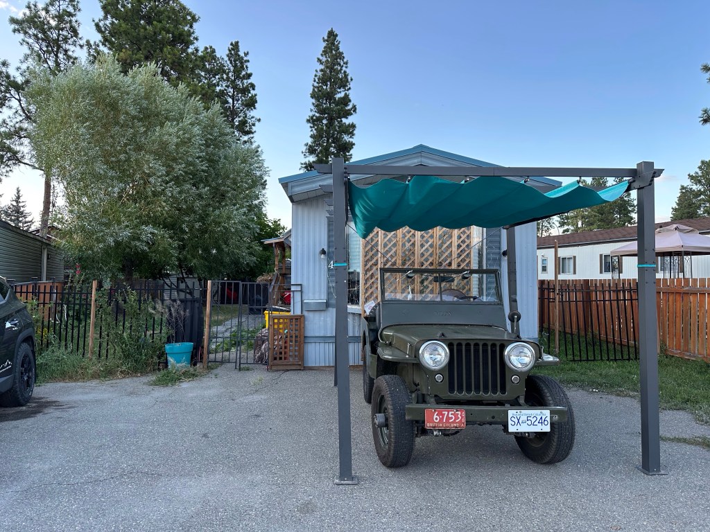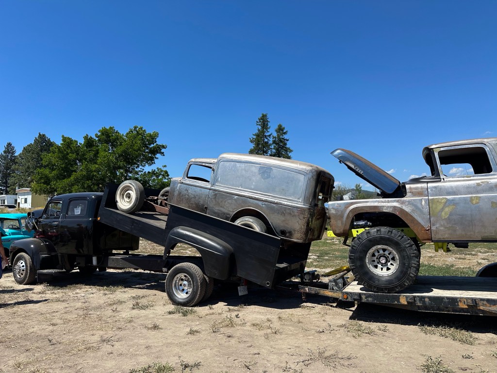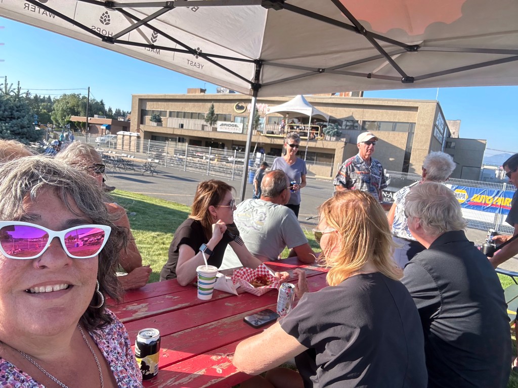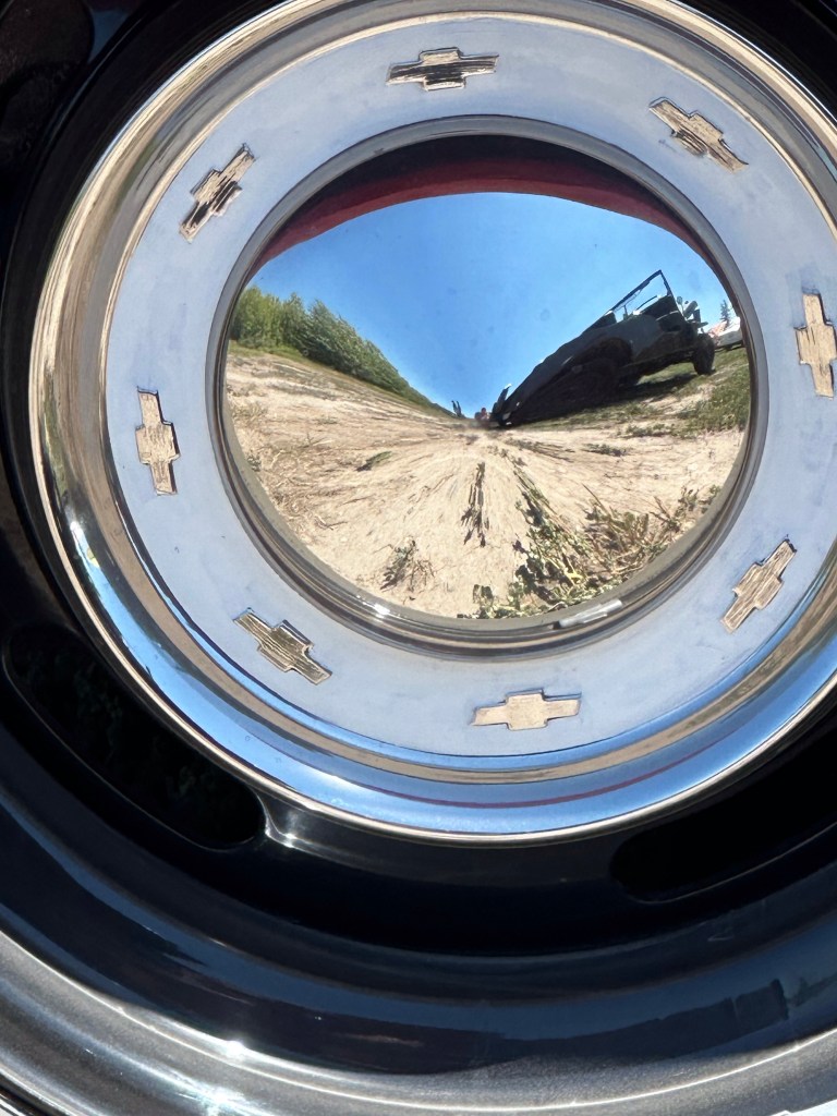 I got myself ready and then went out to wash the Willys and prepare for the car show. The registration said from 11-2 so I showed up just after noon to find the place already full with around 200 cars by my guess. I was very well received pulling into the back row and a few more vehicles arrived after me. It was extremely hot with no natural shade nor water stations. I was grateful for the people who welcomed me to share their shady spots and the great conversations we had. I loved the children who made their Dad’s remember my number to vote for me. There were a few things I would do differently but over all Kenny Bridge put on a great event. I messaged Tracey to come down and we went to the beer garden to join her friends, one of whom, Ray, I had worked with at BC Assessment and we all had a great time. It was a very long day in the sun and dust but there were so many impressive cars and I was glad I was there.