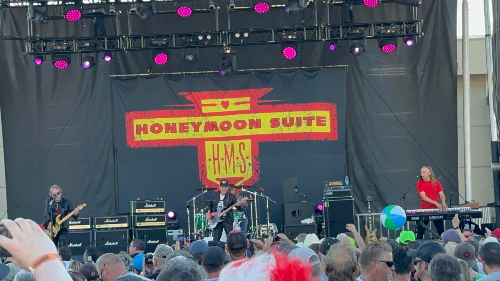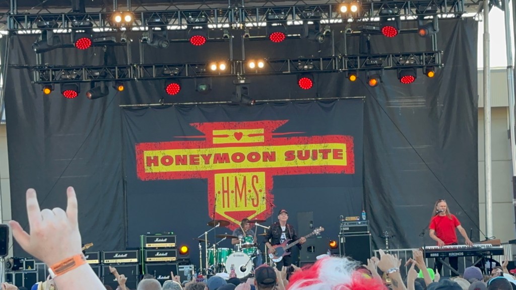 Honeymoon Suite was next. They were very popular. I don’t know if I was overheated or just worn out on this kind of music but I wasn’t as into them as I thought I would be. I mean, they were fine, just not great. They drew a big standing crowd.