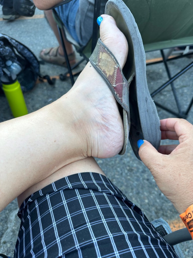 I blew a sandal, but they had a good long life and managed to get me home so I could throw them out.