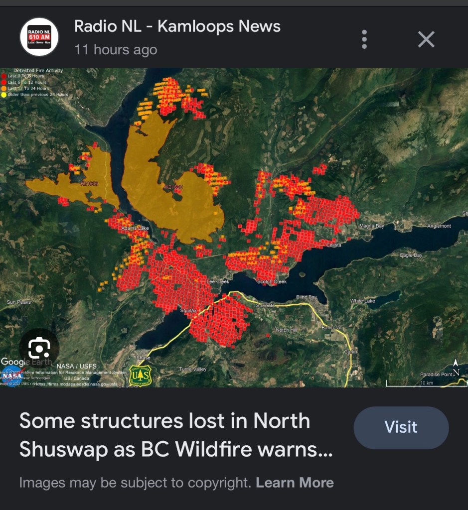 While I was there I received a call from my cousin Rosie, who I stayed with in July that she, Uncle Bryan and Auntie Lynne were packed and leaving their homes as the fire had jumped Shuswap Lake and was too close to them. I had asked this morning if we should be having our family reunion given the province’s state of emergency. It has been decided to cancel it which is sad but is also the right thing.