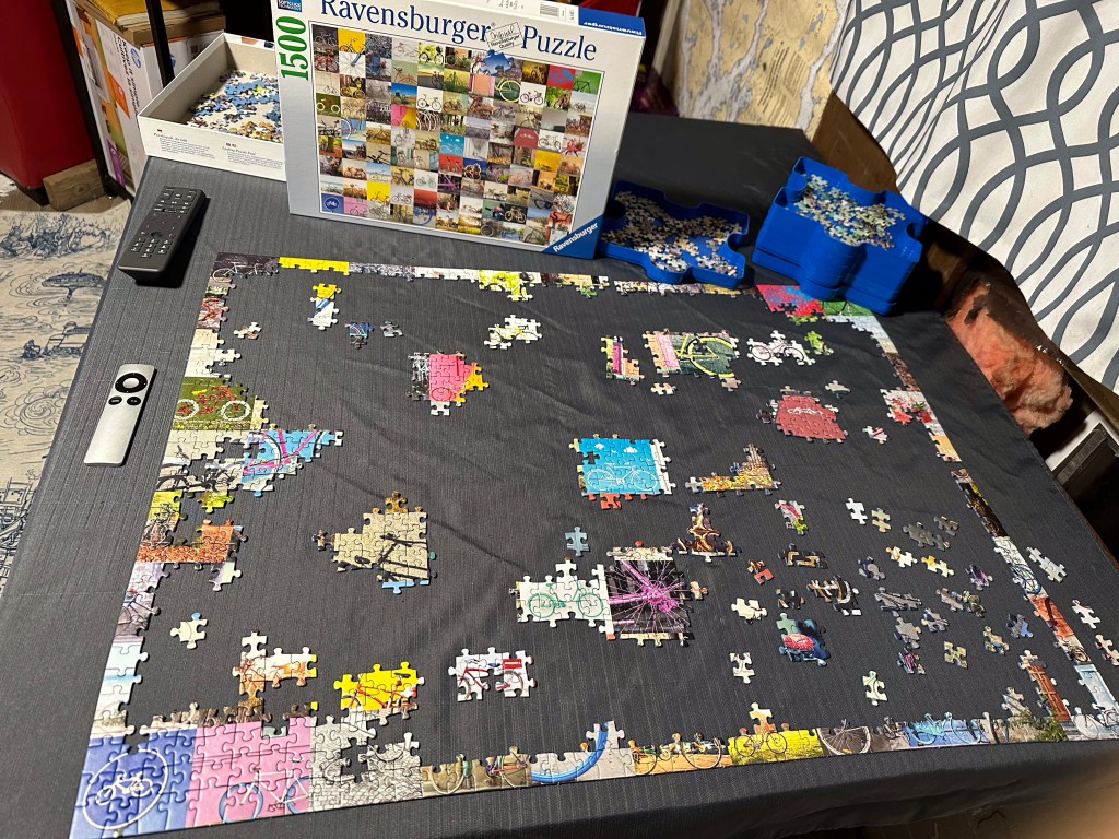 I let myself sleep in and the spent the day puttering at chores, watching The Morning Show and beginning a puzzle.