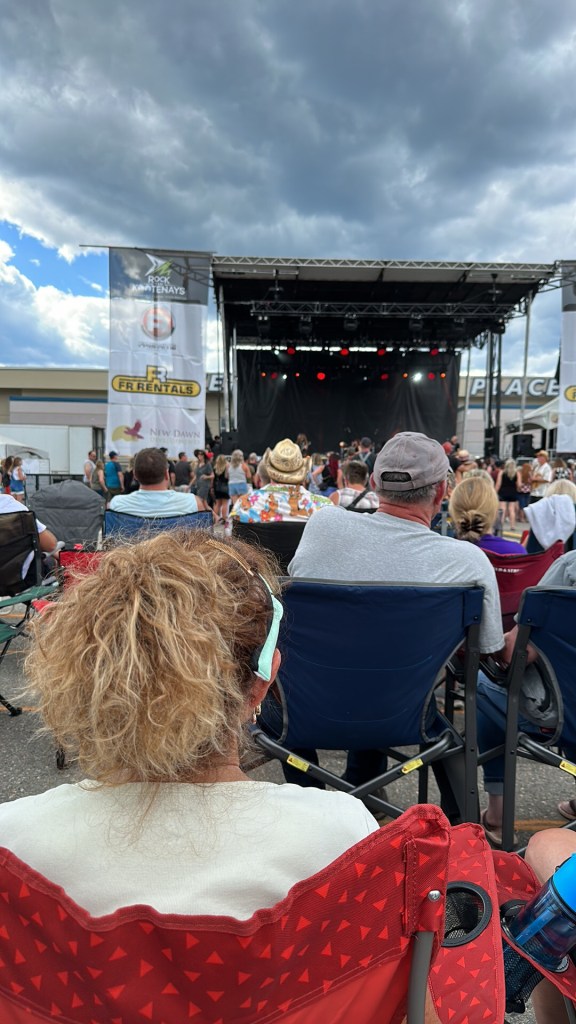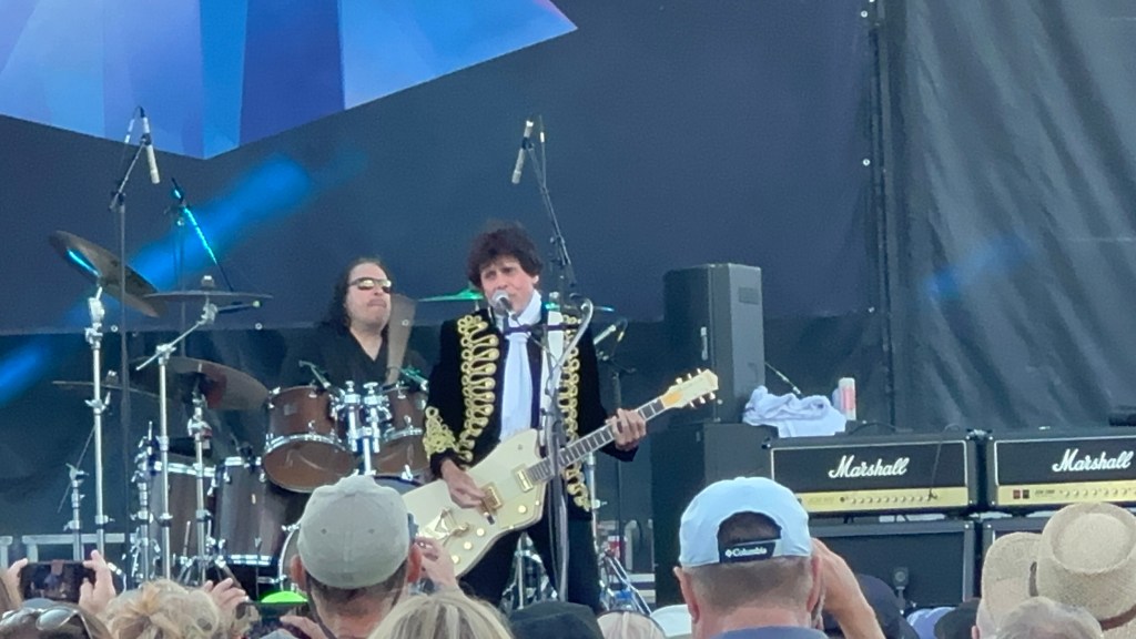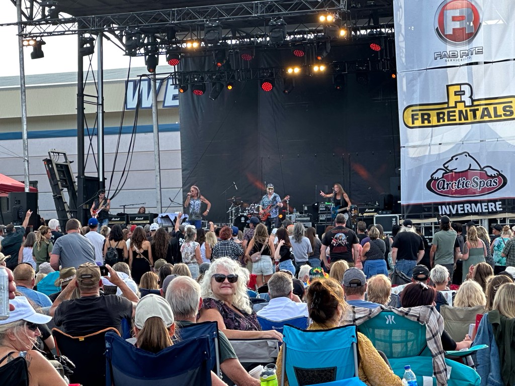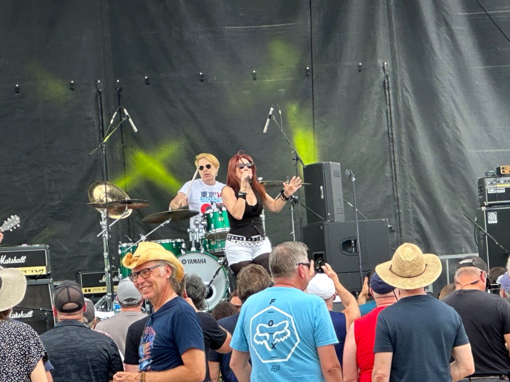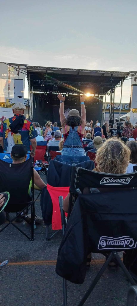 I popped home to feed and visit Missy before heading down to the Festival. Because I was alone, I was able to scout out a spot for my single chair only 6 rows back just to the left ahead of the Front of House tent. Unfortunately there were a couple with tall chairs two rows ahead that the wee lady in front of me and I had trouble seeing around. Eventually we were able to scoot our chairs to see better. Lee Aaron was first and I have always liked her, although not enough to know she has recorded a bunch of new music in the last 6 or so years which I will check out further. She played a few new ones and they were great. I was not disappointed. I was very glad that I found my Loops when I went home to protect my hearing and enjoy it more. Oh and did I mention that she is a year older than me?! (She’s 61)