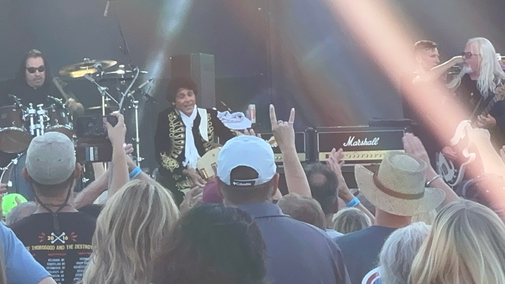 And then it was time for Prism, not going to kid you, I hadn’t realized how much this was going to thrill me. I was whisked back to my teens, thrilled to stand and sing along. I was very into Armageddon and was wonderfully surprised to get two pics taken by Verna who was sitting a few rows back of me. It may have been my goosebump moment of the Fest. Most of their songs I was able to sing along with and they were fun performers. Trying a little too hard not to look as old as they are perhaps.