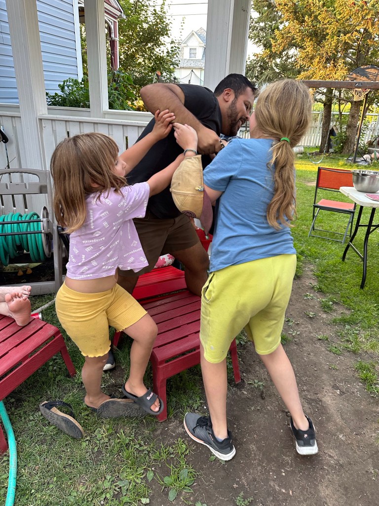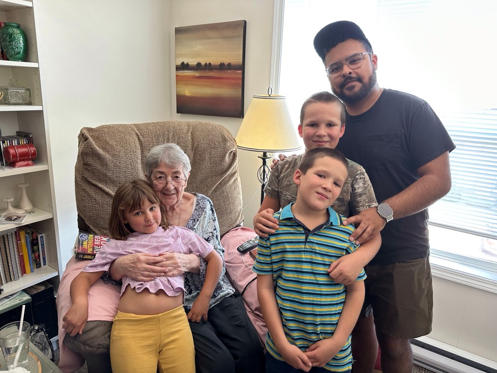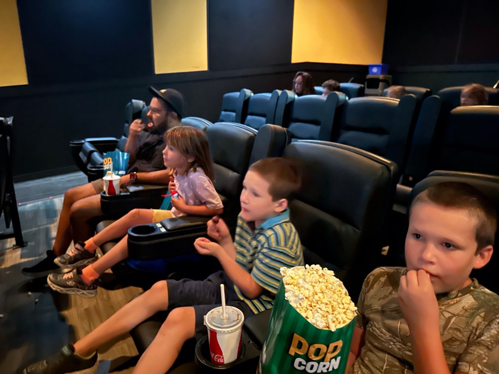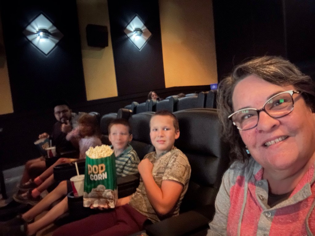 I got chores done and then met Jake, Emmy, Will and Sawyer at the theatre at noon to see Elemental. We were completely enjoying the movie when the Fire Alarm went off. At first most of us thought it was part of the movie and then realized the lights were flashing. We all waited outside for half an hour before they found out someone had triggered the alarm near the Dollar Store in the mall and we were allowed back in. Because it was the only showing of the day, they started it near where we left off and we were able to see it to the end. It was a lovely movie. We stopped to see Mom after. Sawyer gives the best hugs.