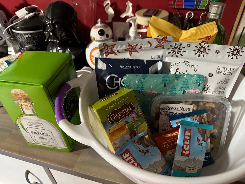 Up: I had so much fun shopping, filling the list of Keto friendly, interesting foods and beverages. Google and label reading was my Jam, The hardest thing to find was a 26er of Silver Patreon. At the last spot in town I finally found it.