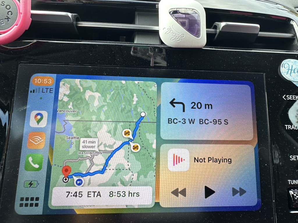 Last stop for gas was in Eureka and then it was a short hop to the border. If finished listening to The Palace Papers and began listening to “ A Promised Land” written and narrated by Barack Obama. I am not going to kid you, it is nice listening to both his story and his voice. The Palace Papers was an interesting take, summing up all of the things I have already read or watched and giving a good perspective and review. I do like Audible. It was fun to listen to my music while with Sonia. I set my music on alphabetical songs and we made it to the start of the C list on our time together. I only skipped Christmas and hard core gospel.