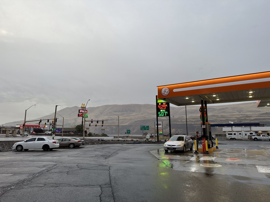 The weather is off and on clear and a few moments of weather. I suspect I won’t notice the eclipse at all as I travel along. My first gas stop was interesting and I was running the lowest yet so also glad the price was low.