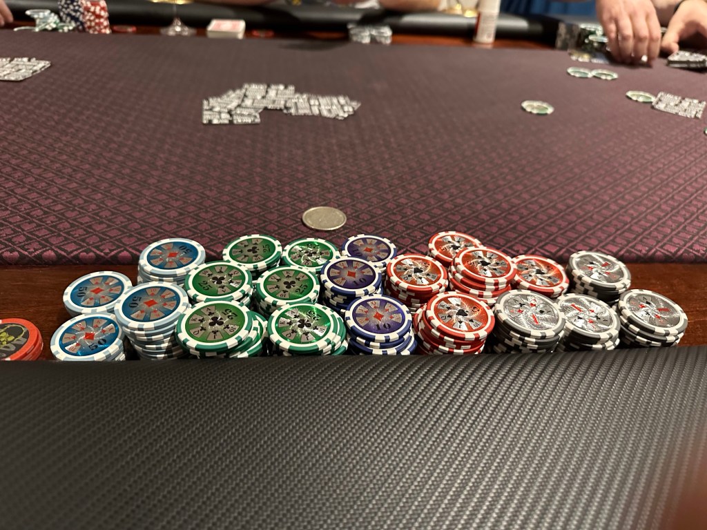 I spent 7.5 hours at a client’s today and that was fun and took my mind away from it, mostly. I popped home to feed Missy and then grabbed cash and headed to Landon’s for a small group poker night. There were 8 guys, Landon’s Nona, and me. I was big stack right up until I was taken out 3rd, that and my bounties sent me home $55 up and I had my faith restored by a small group of good humans.