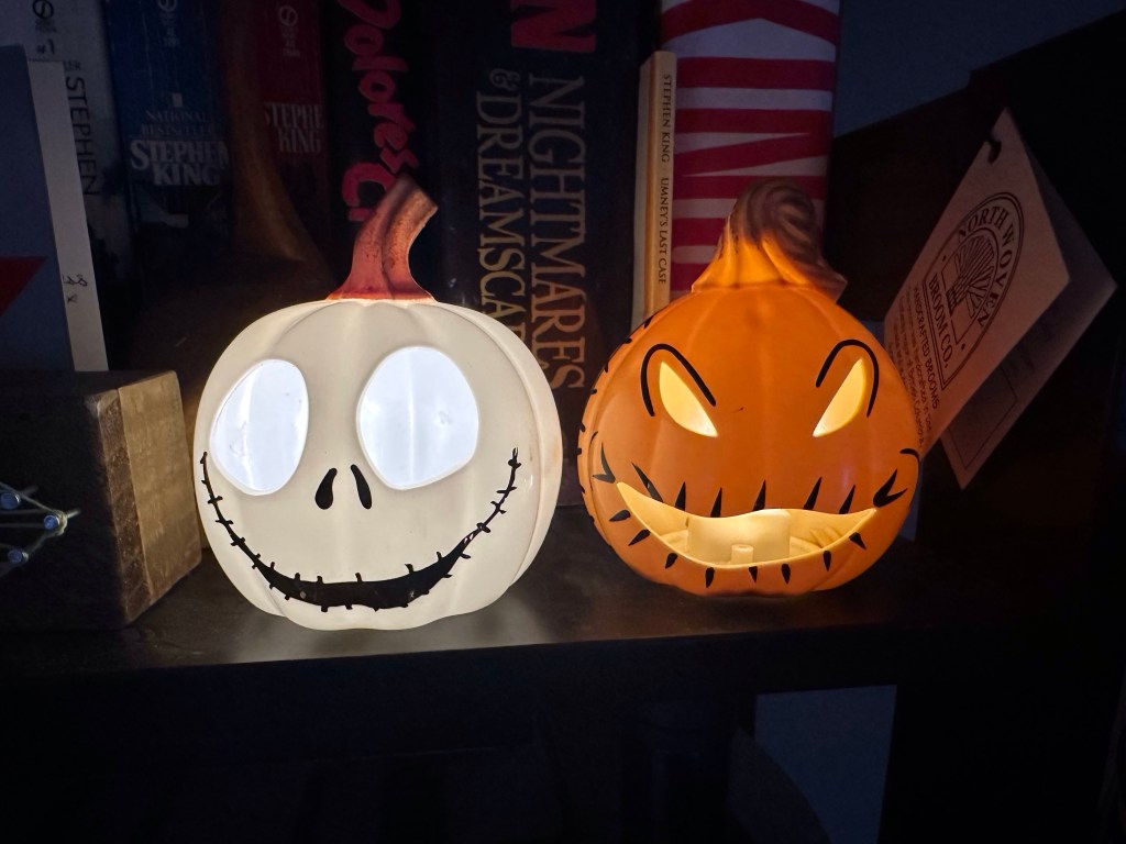 This morning I lit up the gift Ashlée found for me and they are so cute that they shall sit on my collector shelf to bring me joy all year, not just Halloween.