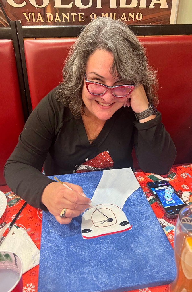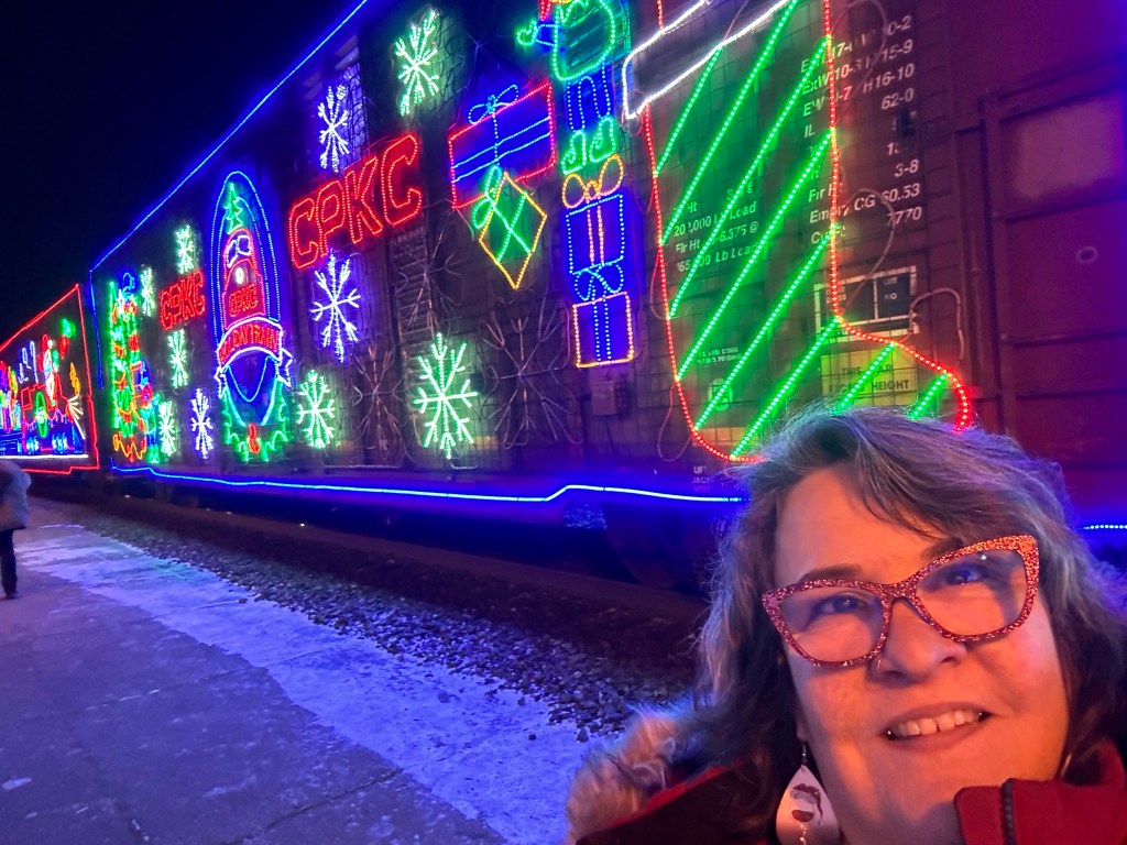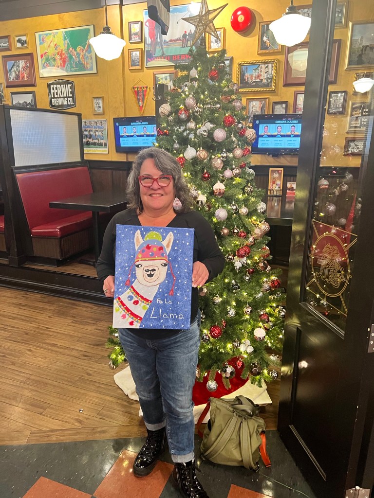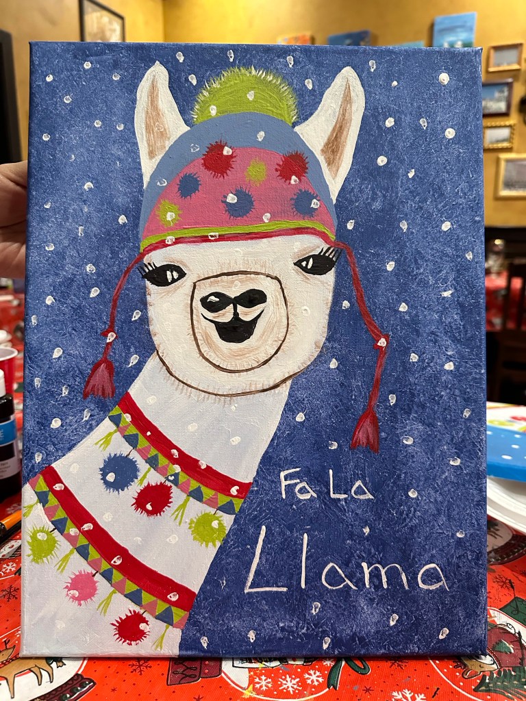 I was at a clients on the outskirts of town by just after 10 am and worked with her until 2 when I took a break to run to the office and check on a payroll query. I was back at her office just after 3 and we worked until 5:45 as I needed to be at East Side Mario’s for 6. I had signed up for a paint night as soon as I saw it was to be a llama. I sat at a table by myself and the last group to arrive were three Spanish speaking ladies who were lovely to sit with. We had a nice time and I was pleasantly surprised how I understood the drift of a lot of their conversation. One of them is the French assistant at the middle school and knows Lukas and Will. She said they are both good boys. My painting turned out not bad and I added the saying on my own. Afterward, I ordered food and then the holiday train went by which I forgot was coming. I asked for my food to go and left to luck into a parking spot right in the lot as someone was leaving. I wandered and found the girls and most of the kids and we enjoyed the performances. I left to wander to the engine so I could take a video as it left, but it turned out it just pulled forward a bit and was there for the evening. I walked and took a video before leaving. Once home I ate a little of the food, and settled in to try to get tired. It was a good day.