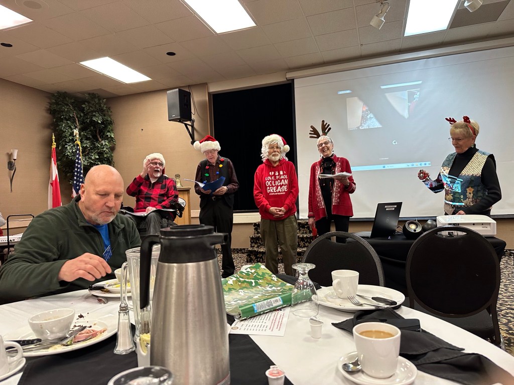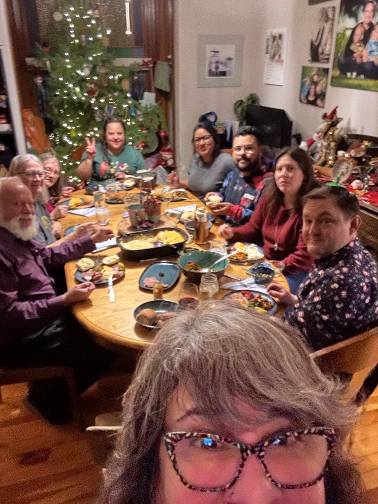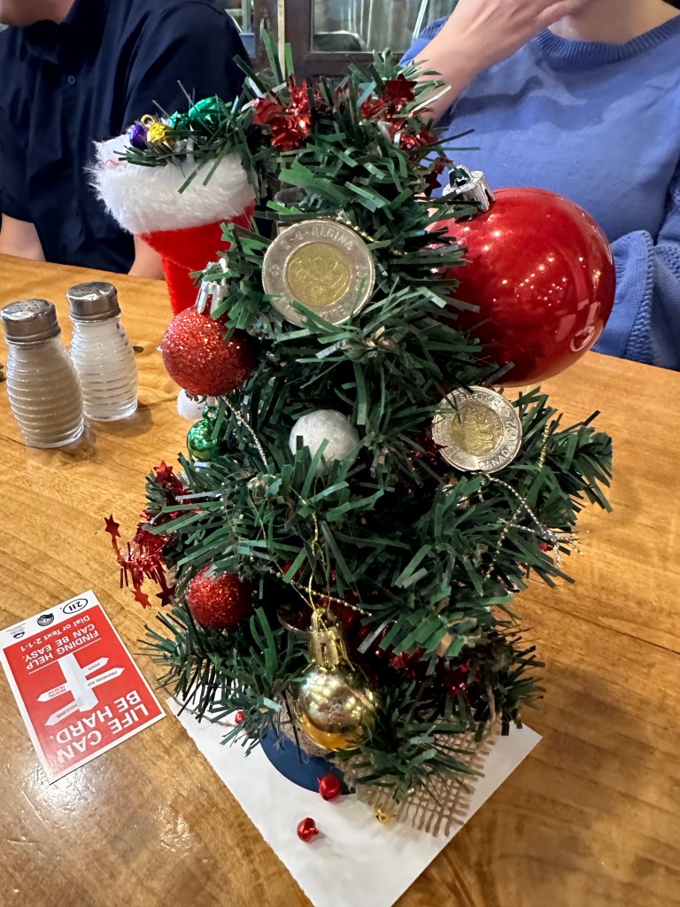 I was busy getting payroll done, but took time to enjoy lunch with some others in the coworking space. I then got it all done in time to join a bunch of friends at the Fire Hall for a beverage. It was so nice to be included and I had a great visit with those at my end of the table. Next stop was Save-On to grab a few things for Christmas breakfast and stockings. I stopped at Arby’s as I was wearing my Arby’s Christmas sweater and wanted to drop them off some chocolates. It was nice to see the previous coworkers and wish them the best. I came home and dropped everything off before heading to Tim and Shawna’s for a casual poker game. It was fun and I lasted from 7:30 until 11:30 nearly making it into the money. I am grateful to be invited to these games and look forward to the big game next Saturday night which usually kicks off the league for the year. The wind is howling and I will have to go properly peg down my inflatable decorations in the morning. It is hard to believe it’s only two more days until Christmas Eve shenanigans at the Guedes house.